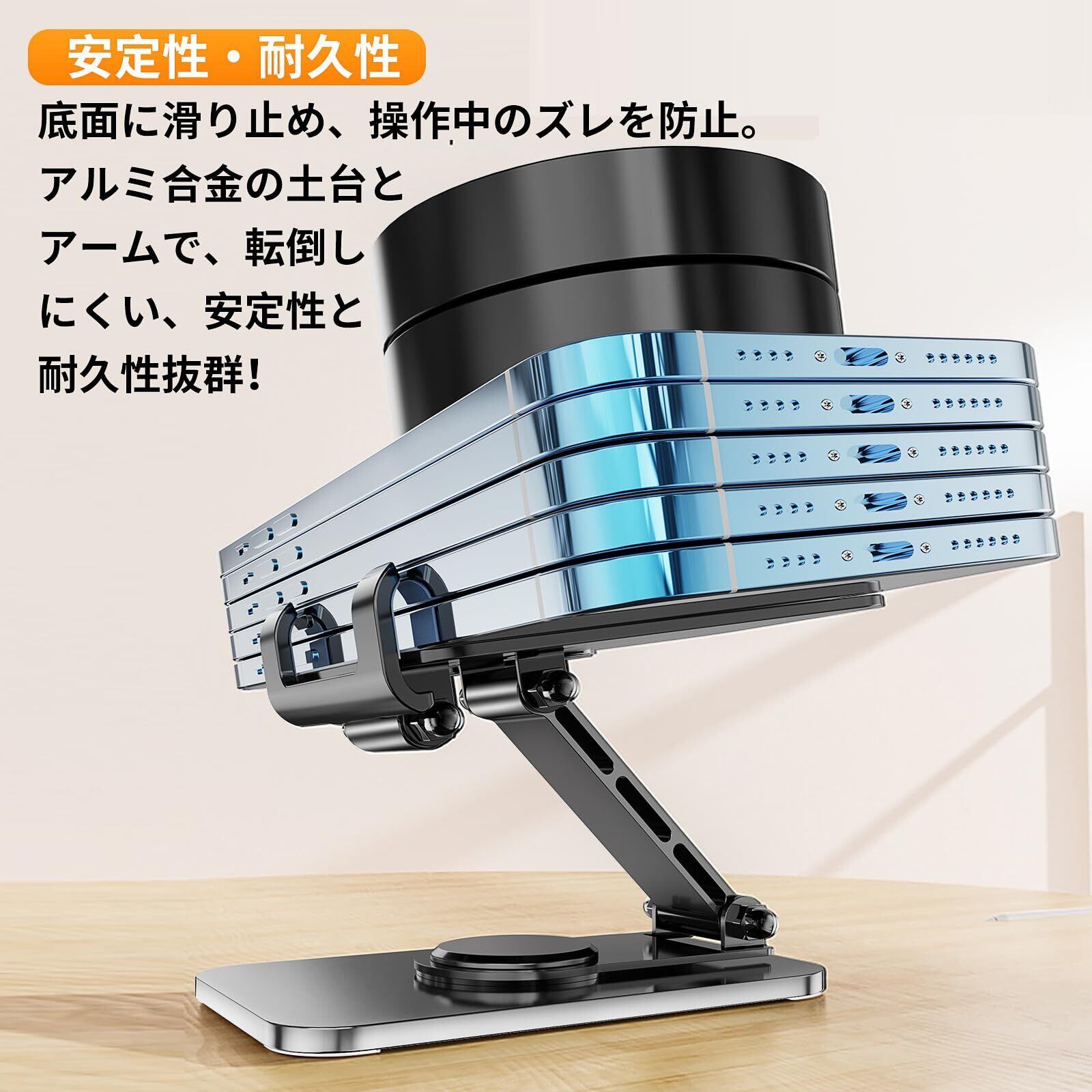 【新型4関節】スマホスタンド 卓上 折りたたみ 携帯スタンド 360度回転可能 ipad スタンド兼用 折り畳み 高さ角度調整 iphone スタンド 手机支架 アルミ合金製 スマホ スタンド 携帯立て iPhone 16 15 14 Pro 13 12 11 SE iPad Xperia Android対応 グレー