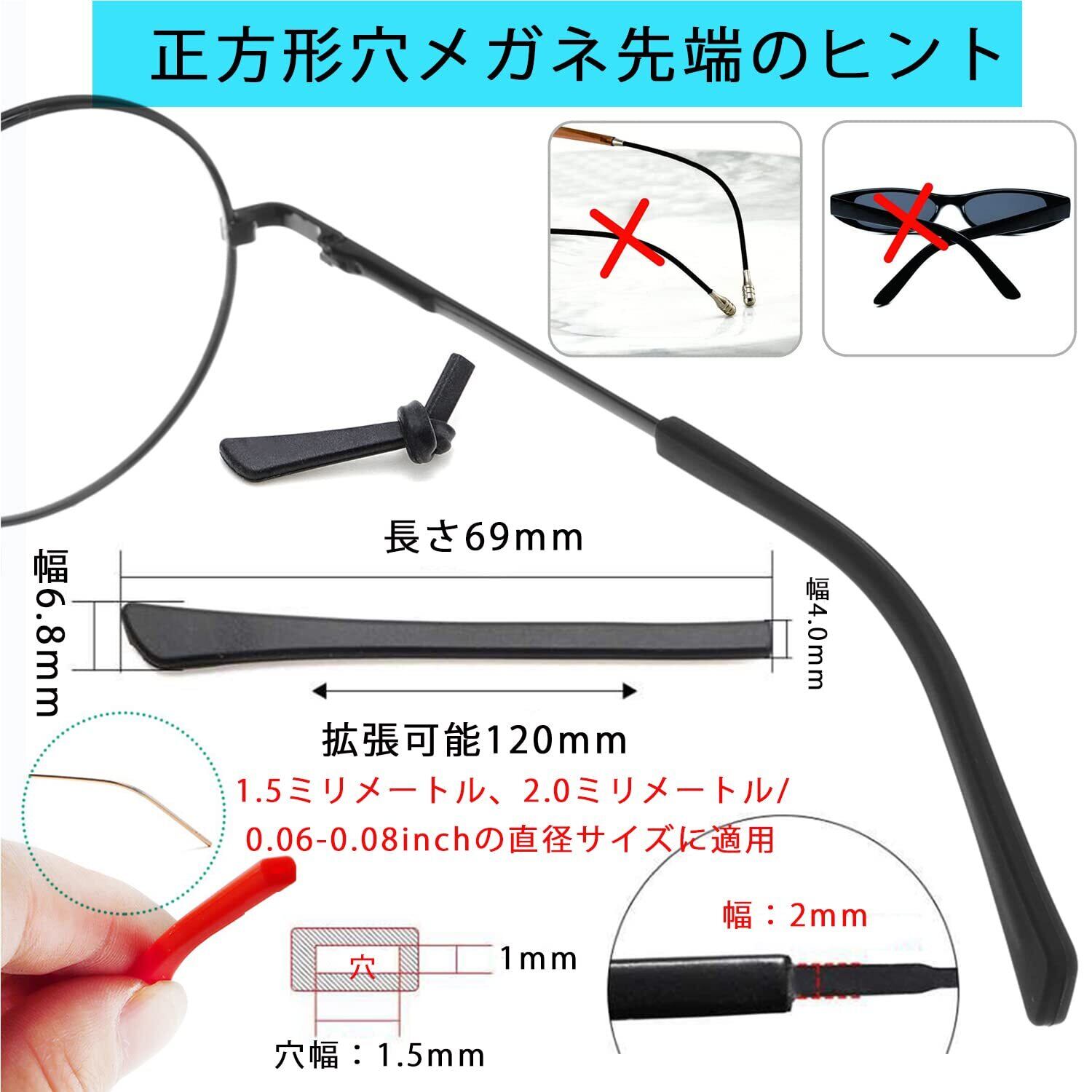 [RIYUMY] 眼鏡先端のヒント正方形穴 拡張可能 シリコーン製 耳サックチューブ 修理ツール 交換 メガネ備品 5ペアセット