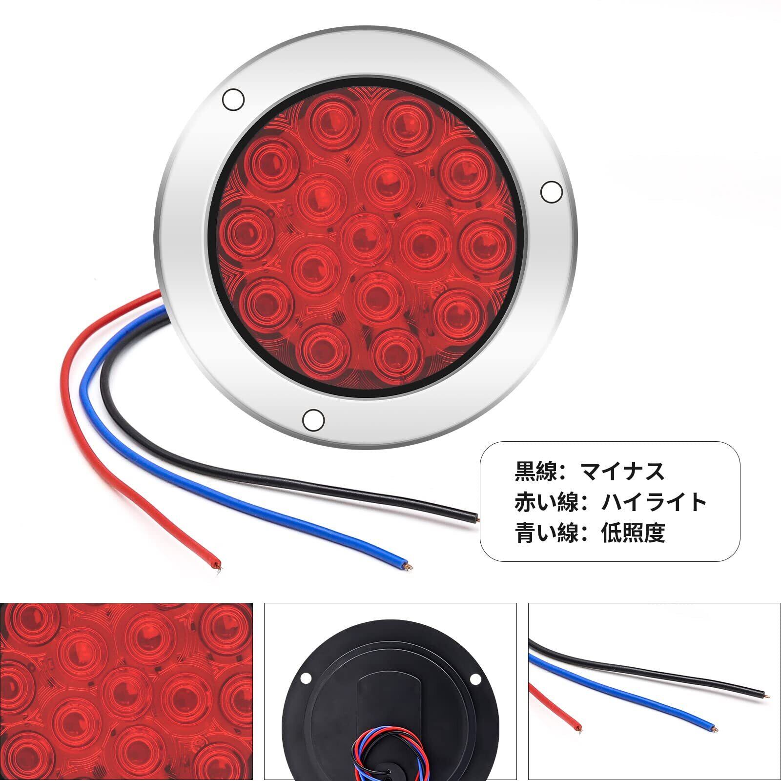 Aoling トラック用テールランプLED 12V 24V 丸型 リアライト トレーラー トラック 軽トラなどのスモール ブレーキに適用 赤 16個LED搭載 電気メッキ パターン付きレンズ 2個セット