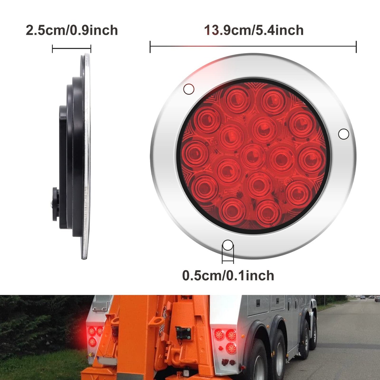 Aoling トラック用テールランプLED 12V 24V 丸型 リアライト トレーラー トラック 軽トラなどのスモール ブレーキに適用 赤 16個LED搭載 電気メッキ パターン付きレンズ 2個セット | yankees