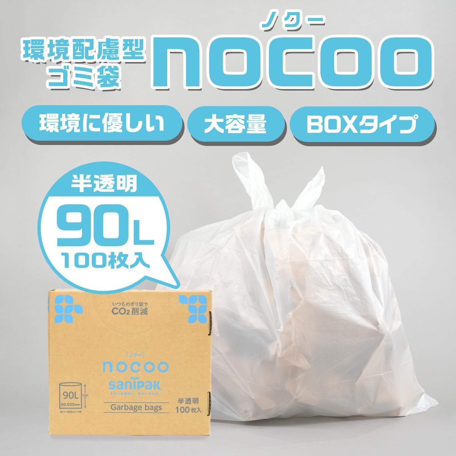 nocoo ゴミ袋 半透明 (90L × 100枚 / 0.025mm) 箱入り エコ素材 (半透明ゴミ袋/環境に優しいゴミ袋/大きいゴミ袋) 業務用 家庭用