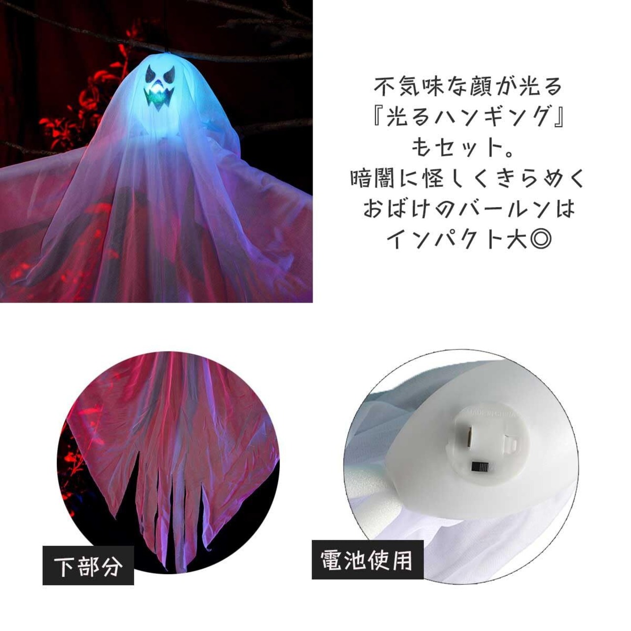 【 ライト点灯でさらに目立つ! 】不気味な顔が光る『光るハンギング』もセット。暗闇に怪しくきらめくおばけのバールンはインパクト大◎!