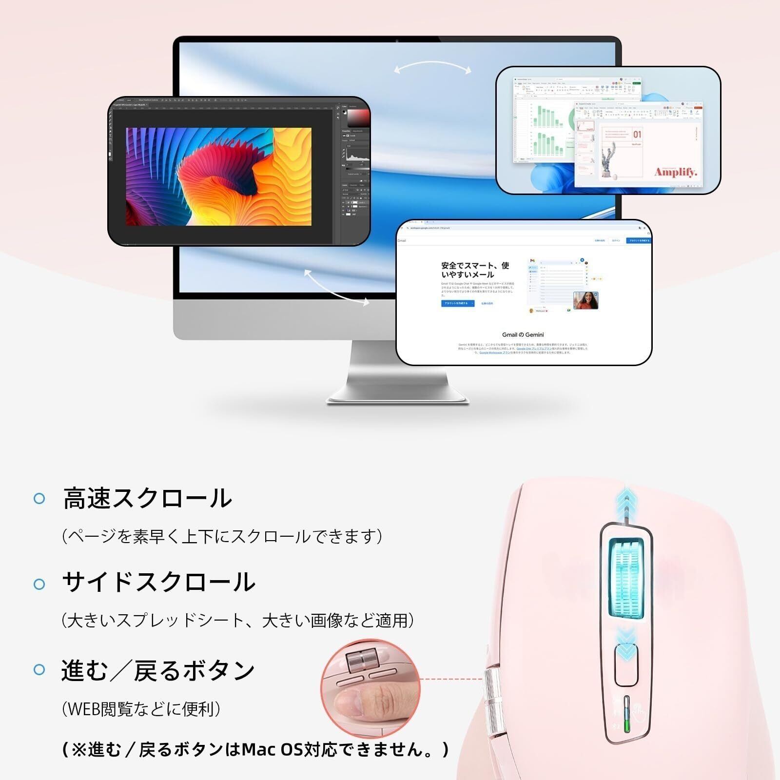 INFINMIND ワイヤレス Bluetooth マウス 高速スクロール DPI切り替え マルチデバイス対応 技適認証取得 人間工学 サイレントマウス サイドサムスクロール ピンク
