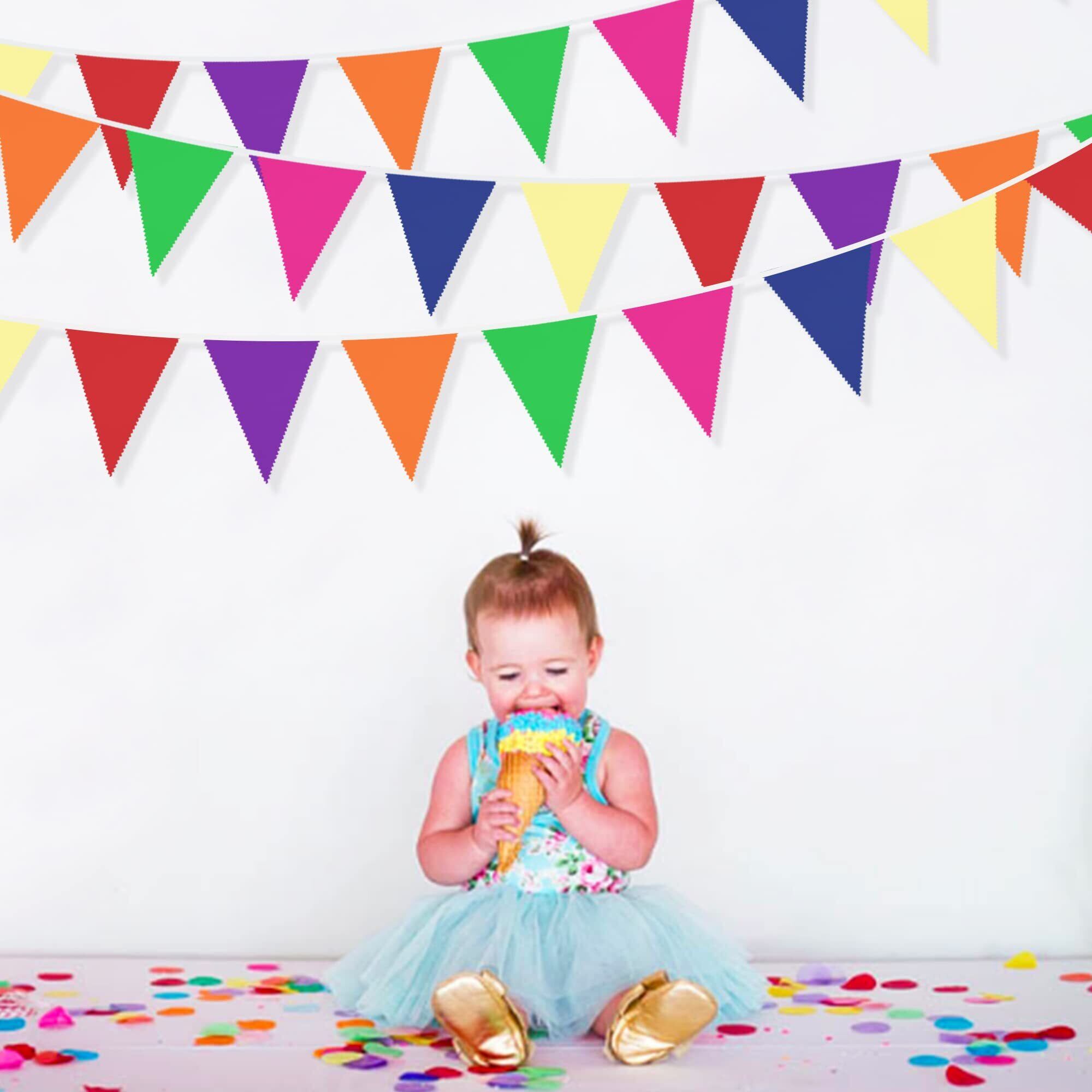 PinkBlume 7色三角旗 布ガーランドバナーパーティー 飾り約10m カラフルな布の旗 パーティペナント装飾 アウトドア 旗 誕生日 飾り付け 100日祝い 結婚式ガーランド キャンプ 旗 三角 テント飾りバースデー デコレーション 子供部屋の装飾 お祭り 用品 水洗い可能