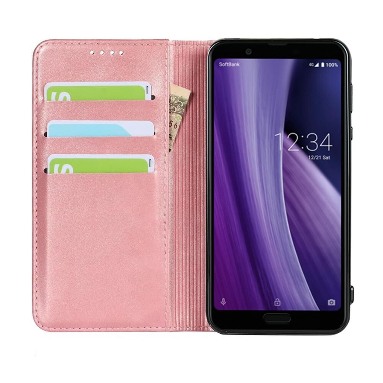 aquos sense3 plus ケース 手帳型 アクオスセンス3プラス ケース 手帳型 SH-M11 SH-RM11 ケース 手帳型 shv46 スマホケース 手帳型 901sh カバー カードスロット、キックスタンド レザー(ローズゴールド)