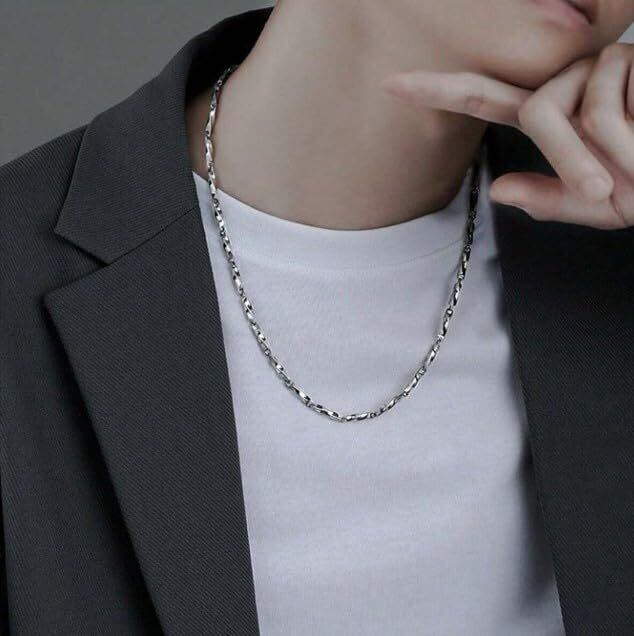 切子タイプのネックレス。メンズチェーンではきれいなデザインで、カット面が胸元をすっきりと見せてくれます。