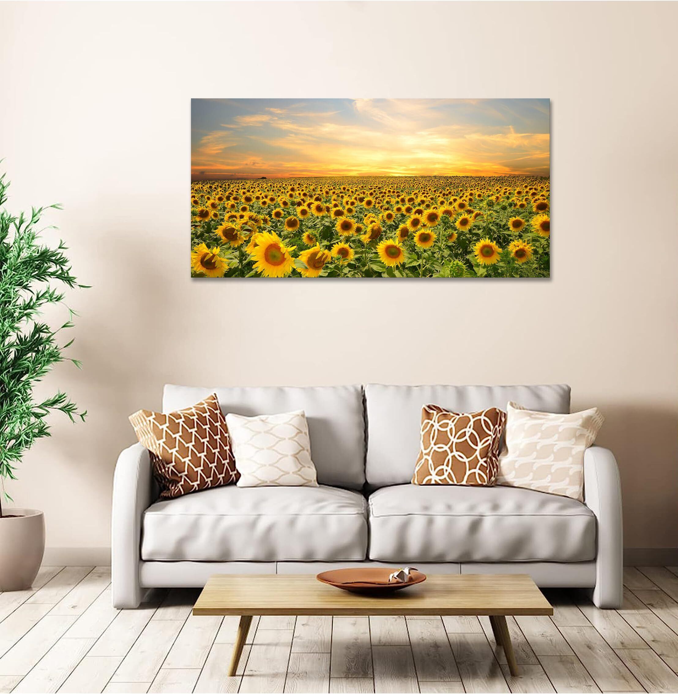 向日葵 絵画 インテリア 額付 花 アートパネル ひまわり ポスター ひまわりの絵 ウォールパネル 壁掛け装飾品 壁画 飲食店 開店祝い 風水 金運 絵 木枠付きの完成品 (40x80cm)