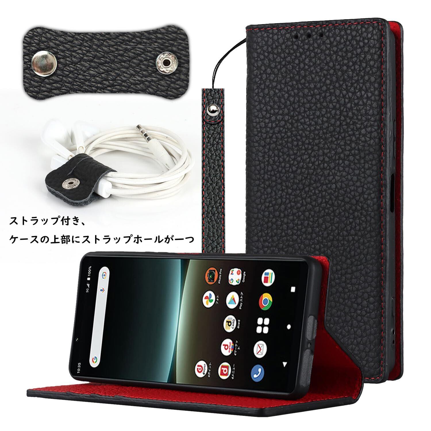 Havaya Xperia5 IV ケース Xperia5 IV カバー SO-54C ケース 手帳型 本革 ストラップ SOG09 docomo A204SO SONY ソニー エクスペリア5iv 第4世代 au 耐衝撃 SoftBank カード収納 スタンド機能 レザー -ブラック