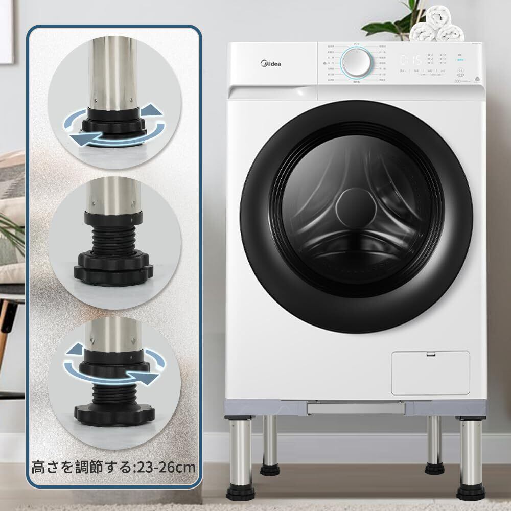 Kokorona 洗濯機 台 冷蔵庫置き台 かさ上げ23-26cm 4足 高度調節 耐荷重約150kg 縦横41~63cm ドラム式洗濯機 台 かさ上げ 高さ調節 減音防振 洗濯機 冷蔵庫 置き台 伸縮式 調節簡単 | yankees