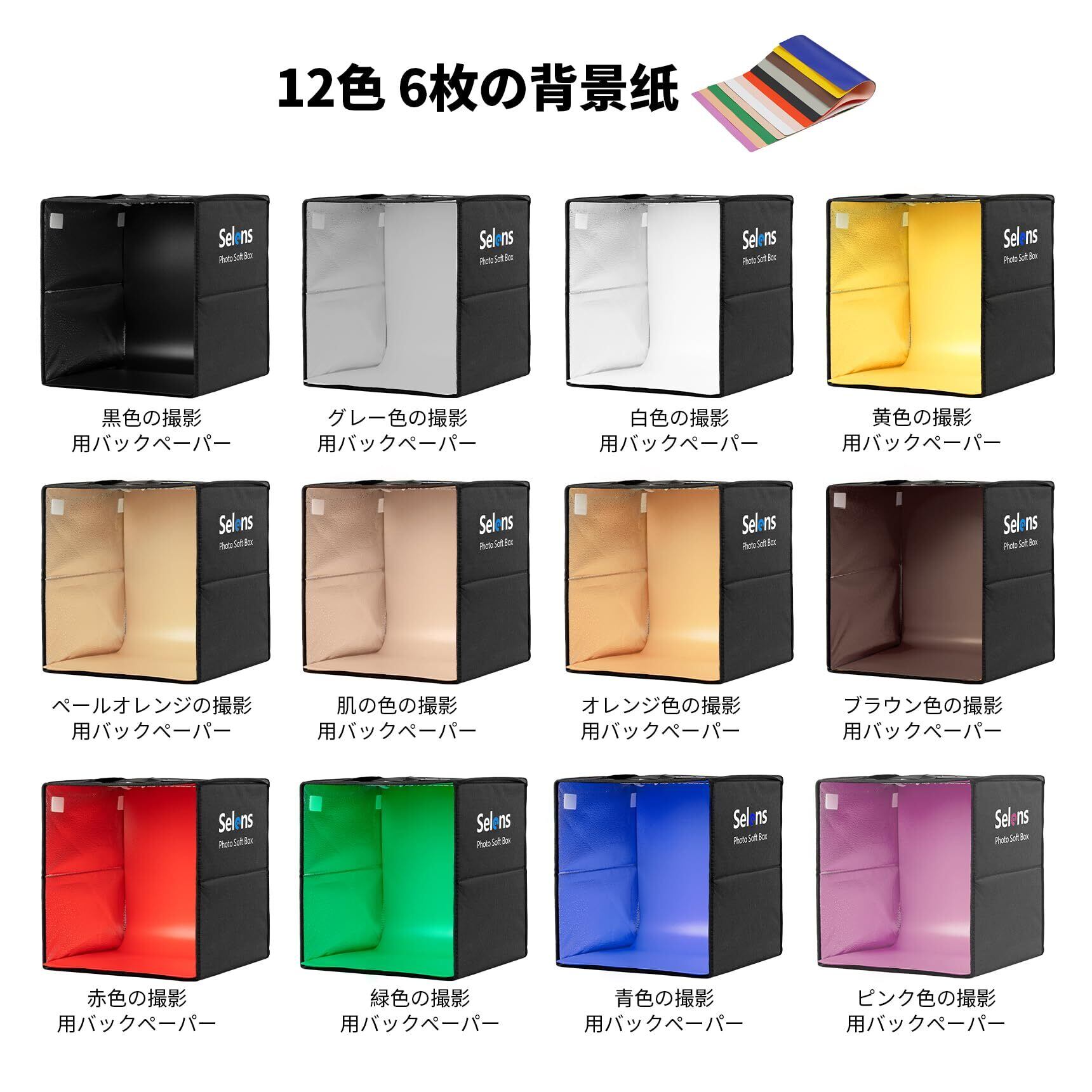 Selens 簡易スタジオ40cm 撮影キット 折り畳み式撮影ボックス 6色撮影用バックペーパー付き 明るさ高い 持ち歩く便利 組み立て簡単 収納便利 日本語説明書付き