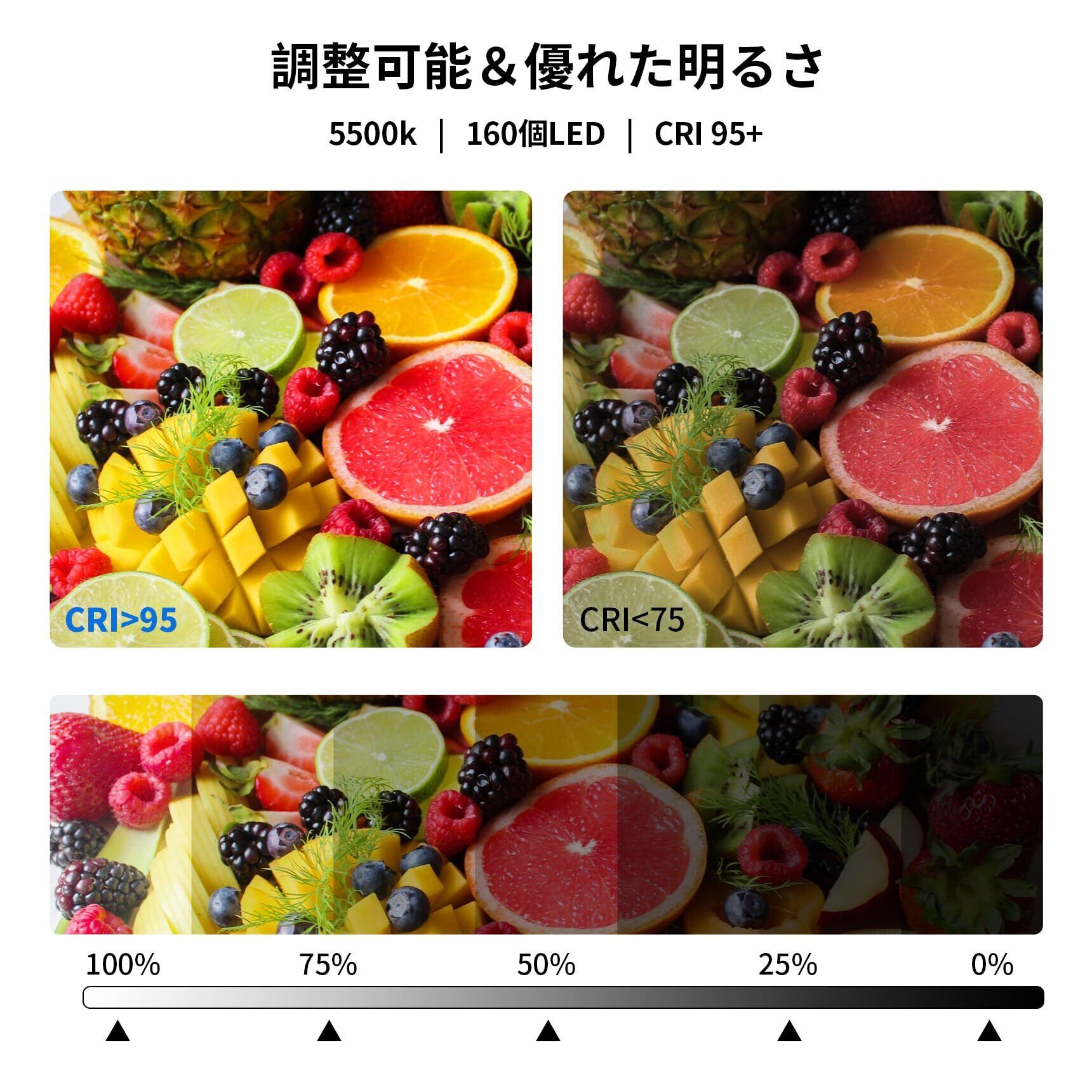 明るさ調整可能:1%~100%まで調整可能。明るさも大勢なお客様に満足させられます。色温度5500Kのプロフェッショナルな白色光、優れた明るさを提供できます。