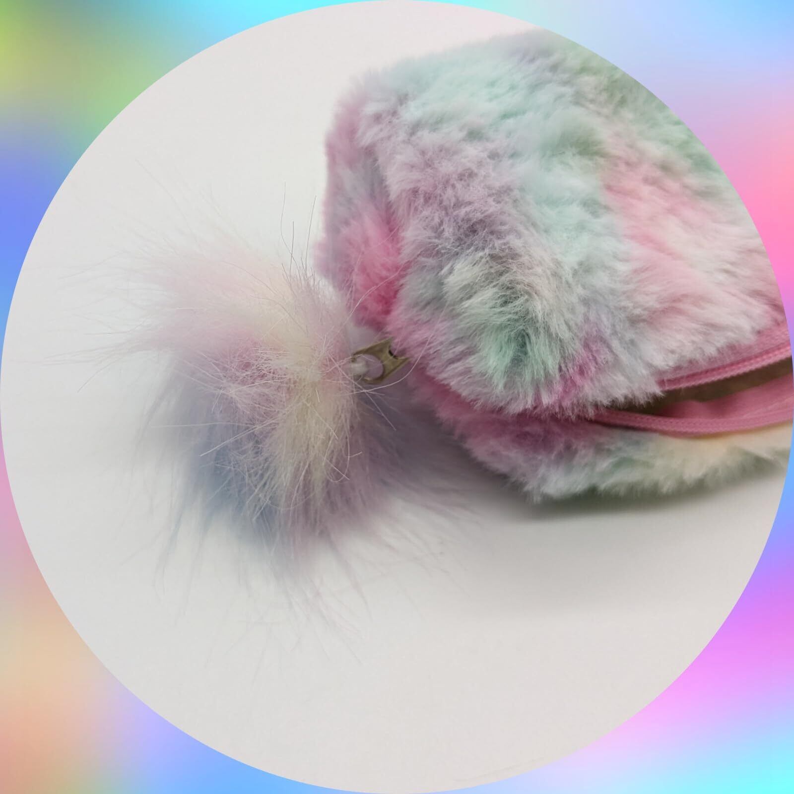 (APOSITV)ファーペンケース ユニコーンカラー ふわふわ もこもこ 筆箱 化粧ポーチ 小物入れ