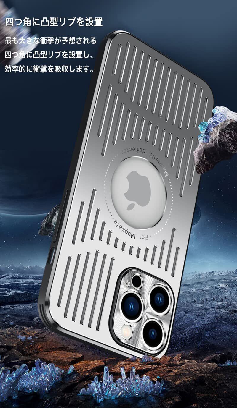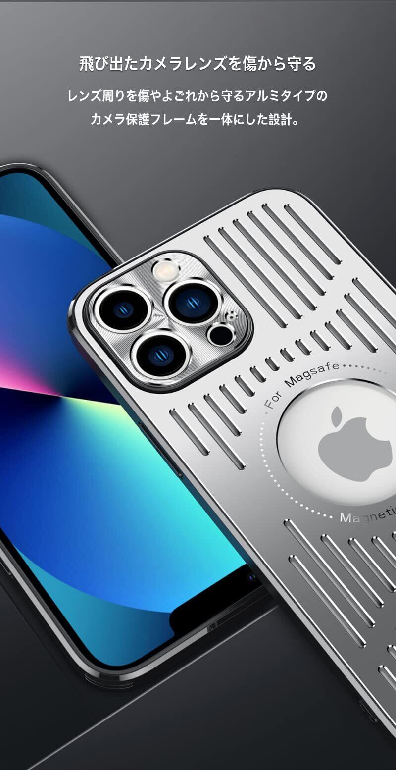 SAVVIES iPhone 15 Pro ケース ハード アルミ ポリカーボネート 耐衝撃 メタル ICカード収納 カメラ保護 指紋防止 マグネット ワイヤレス 充電対応 放熱仕様 軽量 薄型 (シルバー)