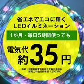【 AD&C TORONICは日本のメーカーです 】日本のメーカー、AD&C TORONICが手掛ける、クリスマスやハロウィンなど、イベントを彩るLEDタイプのイルミネーションブランド「COLORFURA(カラフラ)」です。【 エコ設計 】、省エネ仕様で消費電力はわずか7.5W。1日5時間の使用でも1ヶ月の電気料金は約35円と、コストパフォーマンスに優れたライトです。