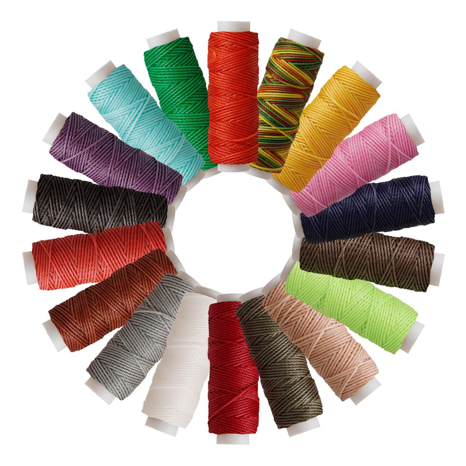 Windman 24色 ロウ引き糸 0.65mm 20M巻き 丸い 蝋引き糸 丸紐 ロウビキ ワックスコード 丸い蝋引き紐 レザークラフト レザークラフト 編み糸 手縫い糸 手芸 ジュエリー用 (0.65mm/20M巻x24色) | yankees