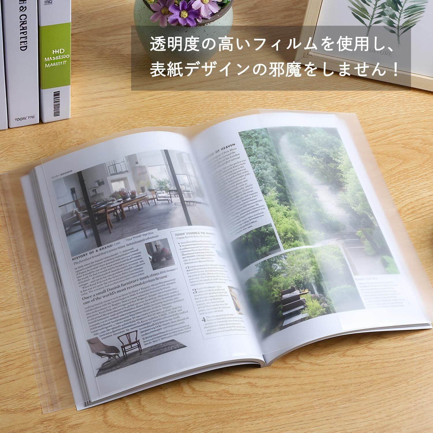 【素材性質】 上質なCPP、OPP材を適用し、柔らかくて、異臭がなくて、使い心地が良いです。水、汚れから保護して、いつも斬新な様子を見ることができます。透明度が高くて、本を見つけるのに便利なデザインです。