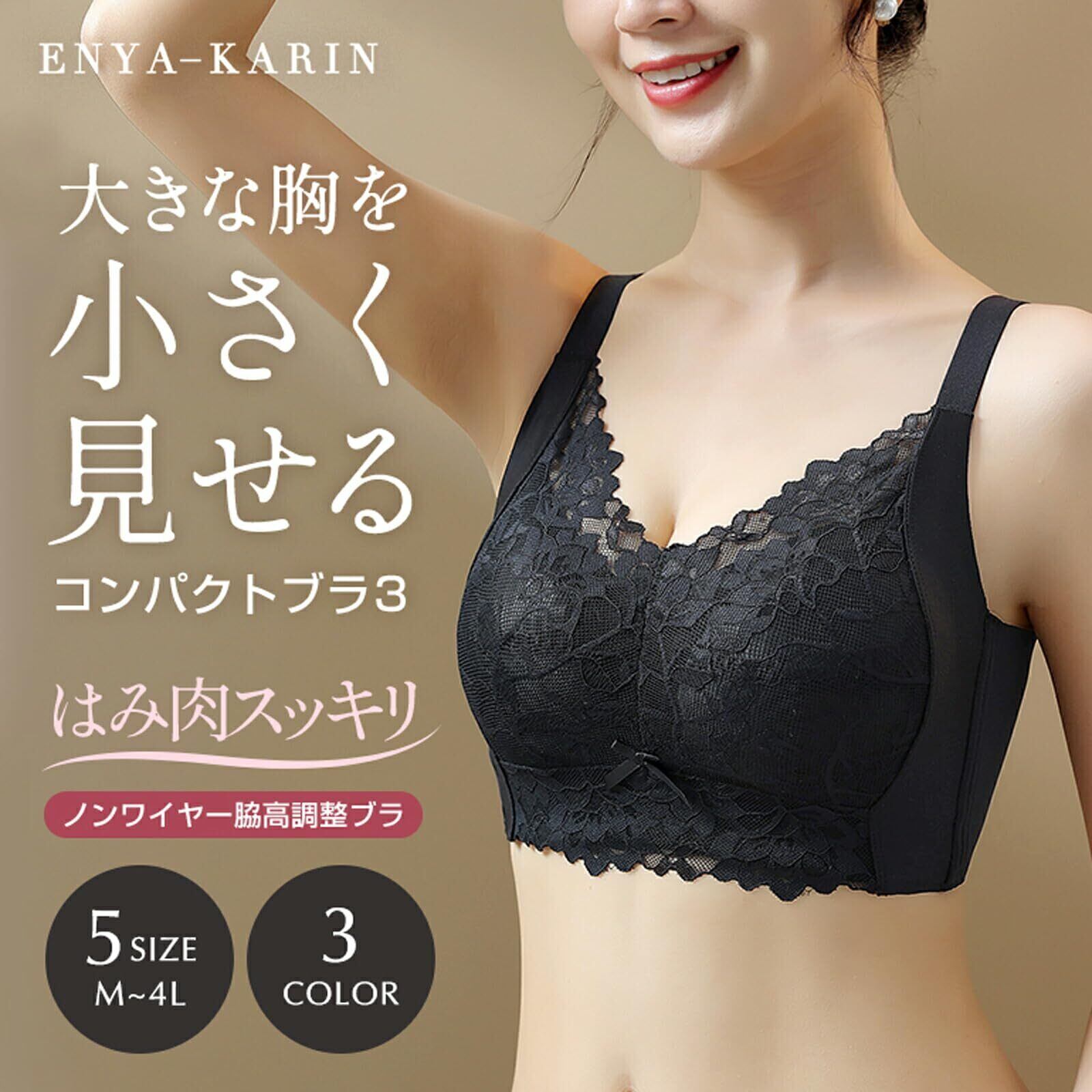 [ENYA-KARIN] [大きな胸を小さく見せるブラ] コンパクトブラ 3 ほっそり着やせ効果 ノンワイヤー ノンストレス 脇高 はみ肉スッキリ 特殊メッシュでバストをフラットに 広幅 脇流れ防止 ソフトレース さらしブラ