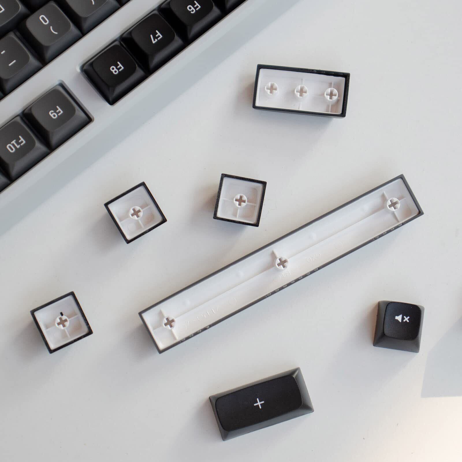 【デュアルカラーキーキャップ】これらの黒とグレーのキーキャップは2色の技術で作られているため、キーキャップの凡例は非常に明確で、フォントは美しく、色あせせず、耐久性があります。
