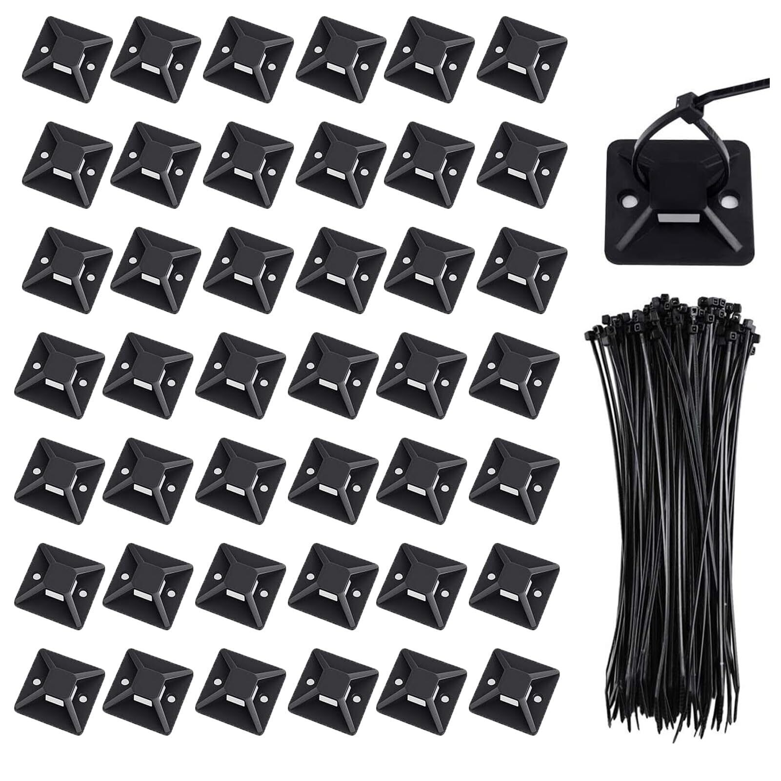 ケーブルタイ マウントベース ナイロン結束バンド 50個 セット ブラック ナイロンケーブルストラップ 強力粘着テープ付き 配線 固定具 ケーブル コード 収納 整理 耐熱 耐候性 18mm By Viaky | yankees