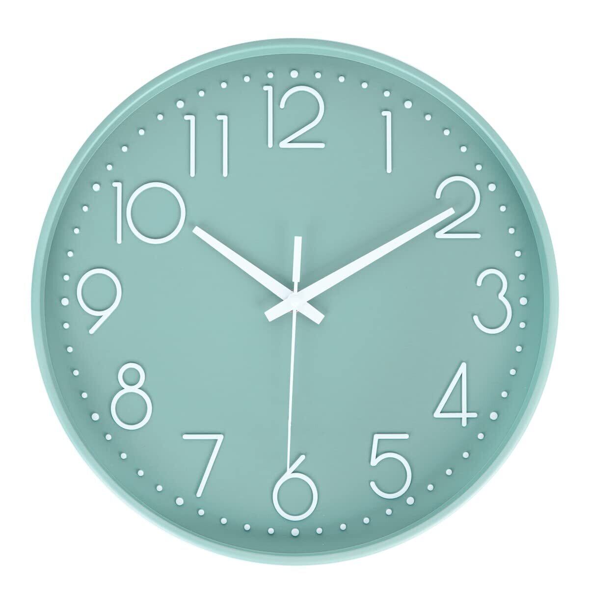 HZDHCLH 掛け時計 電波時計 おしゃれ 壁掛け 時計 北欧 連続秒針 静音 壁掛け時計見やすい 30cm アナログ 夜間秒針停止 (緑)