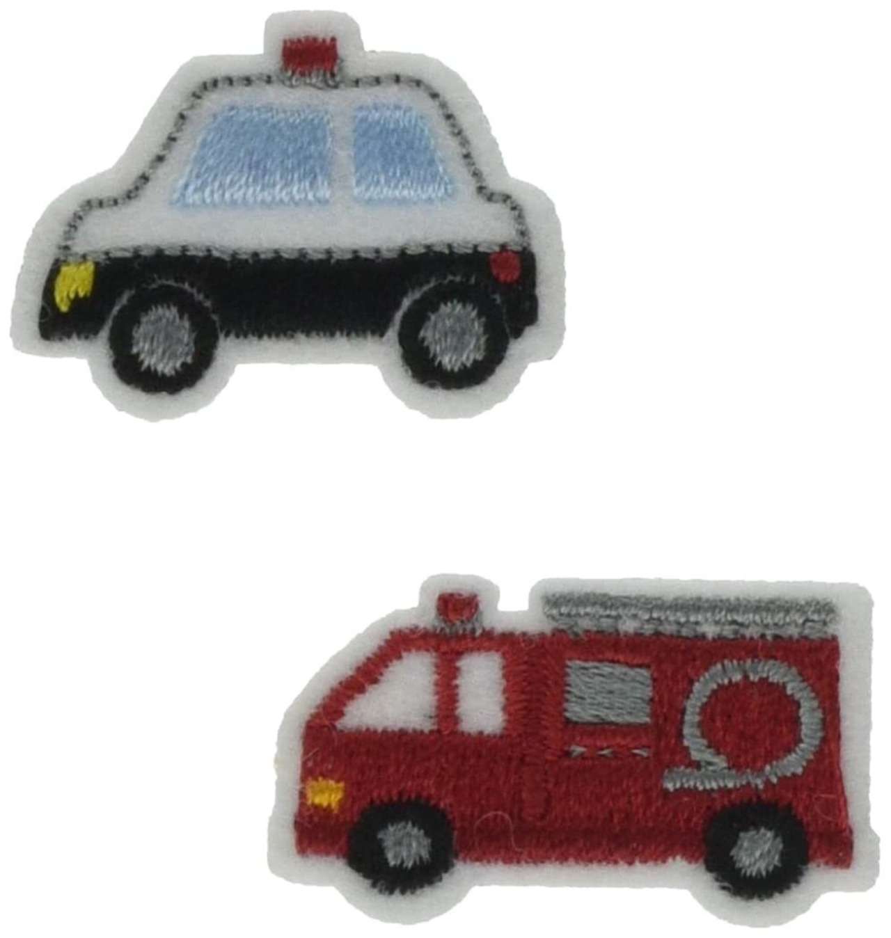 パトカーと消防車の2個付きワッペンです。持ち物のワンポイントなどに*接着方法…シール・アイロン接着両用タイプ