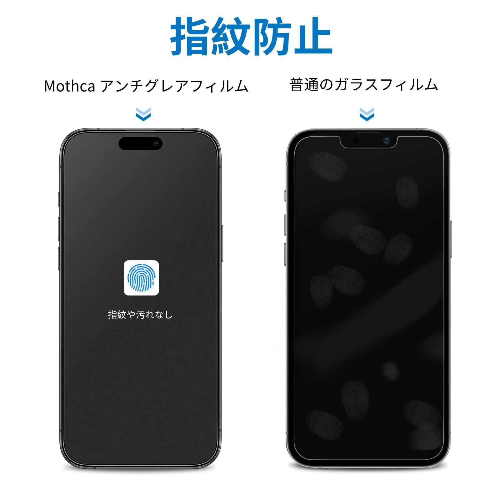 Mothca 2枚セット アンチグレア iPhone 15対応 ガラスフィルム+カメラフィルム(2枚) 保護フィルム 強化ガラス サラサラ タッチ感 ゲームフィルム ガイド枠付き 液晶 日本旭硝子製素材 指紋防止 反射防止 硬度9H 飛散防止 キズ防止 衝撃吸収 撥油性 疎水 アンチグレアフィルム