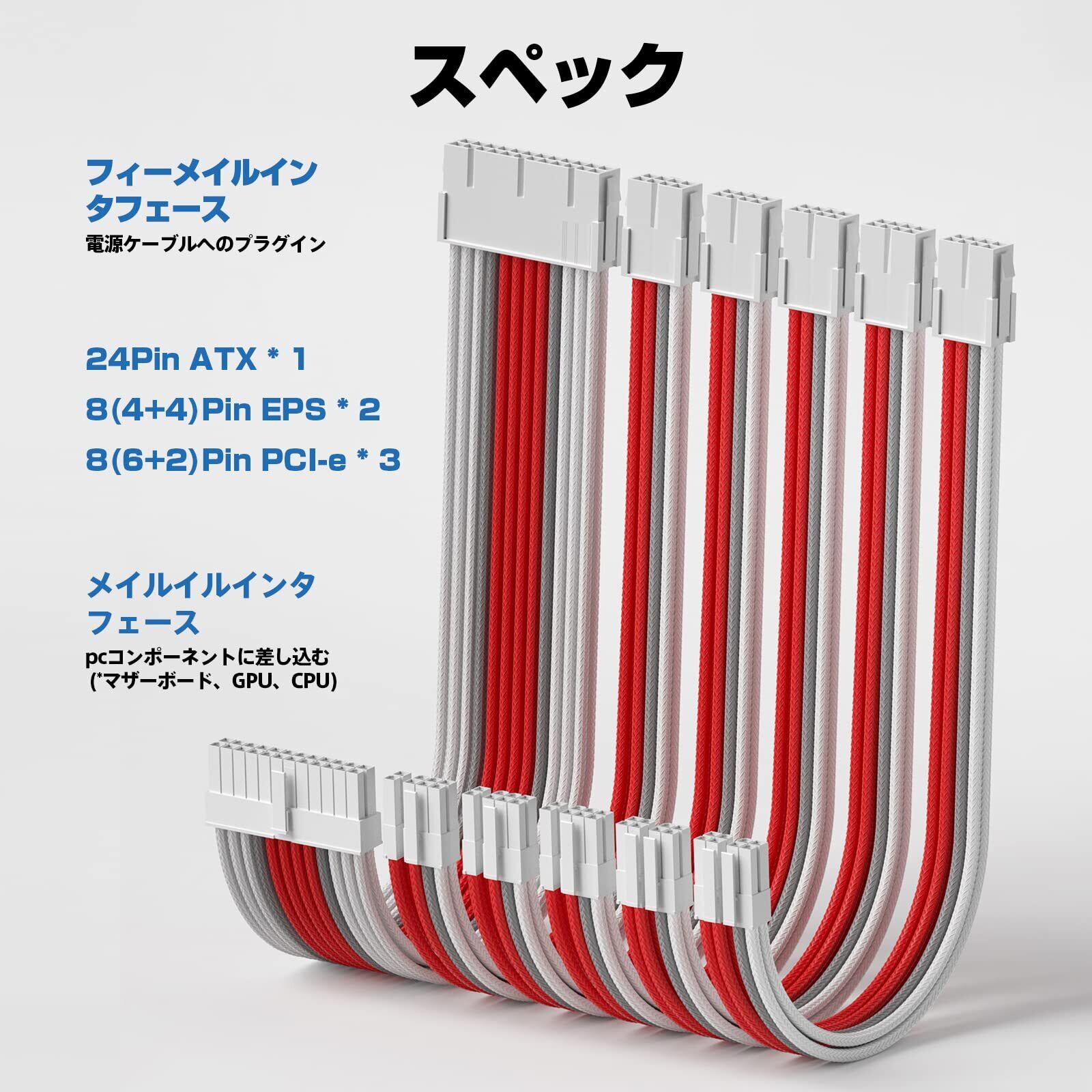 [乱雑さとのお別れ]: 当社のスリーブケーブルは、白雪姫+赤+灰のデザインを採用しており、ほとんどのシャーシ内部コンポーネントやLED照明効果とシームレスに統合され、視覚的に新鮮で整頓された感じを提供します。さらに、白雪姫+赤+灰色は掃除が簡単で、時間が経ってもシャーシ内部の清潔さと美観を保つことができます。また、セットには24本のケーブルタイが含まれており、ユーザーがケーブルをより良く整理し固定するのに役立ち、シャーシ内の空気循環をさらに最適化します。