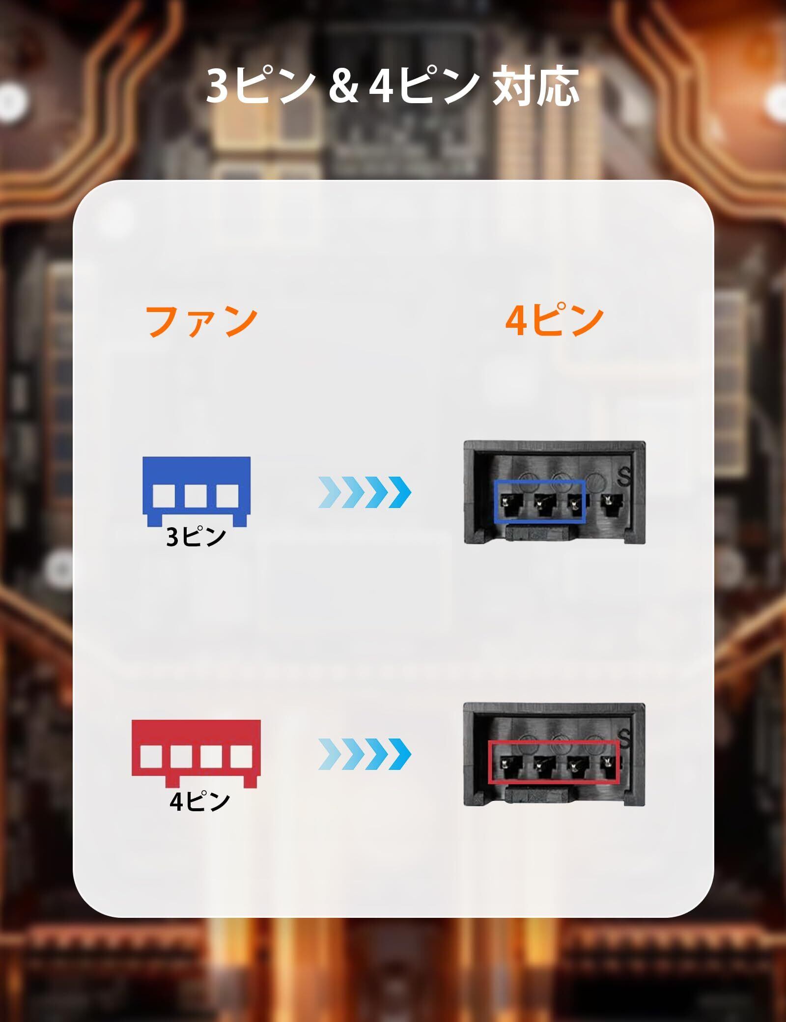 【超安定】 超安定しているファン延長ケーブルはマザーボードとCPUファンを柔軟に置って、空気の流通を改善でき、最適的な放熱効果を実現します。4ピンPWMまたはファンコネクタの欠如を効果的に解決し、3ピン、4ピンを選択して接続できます。