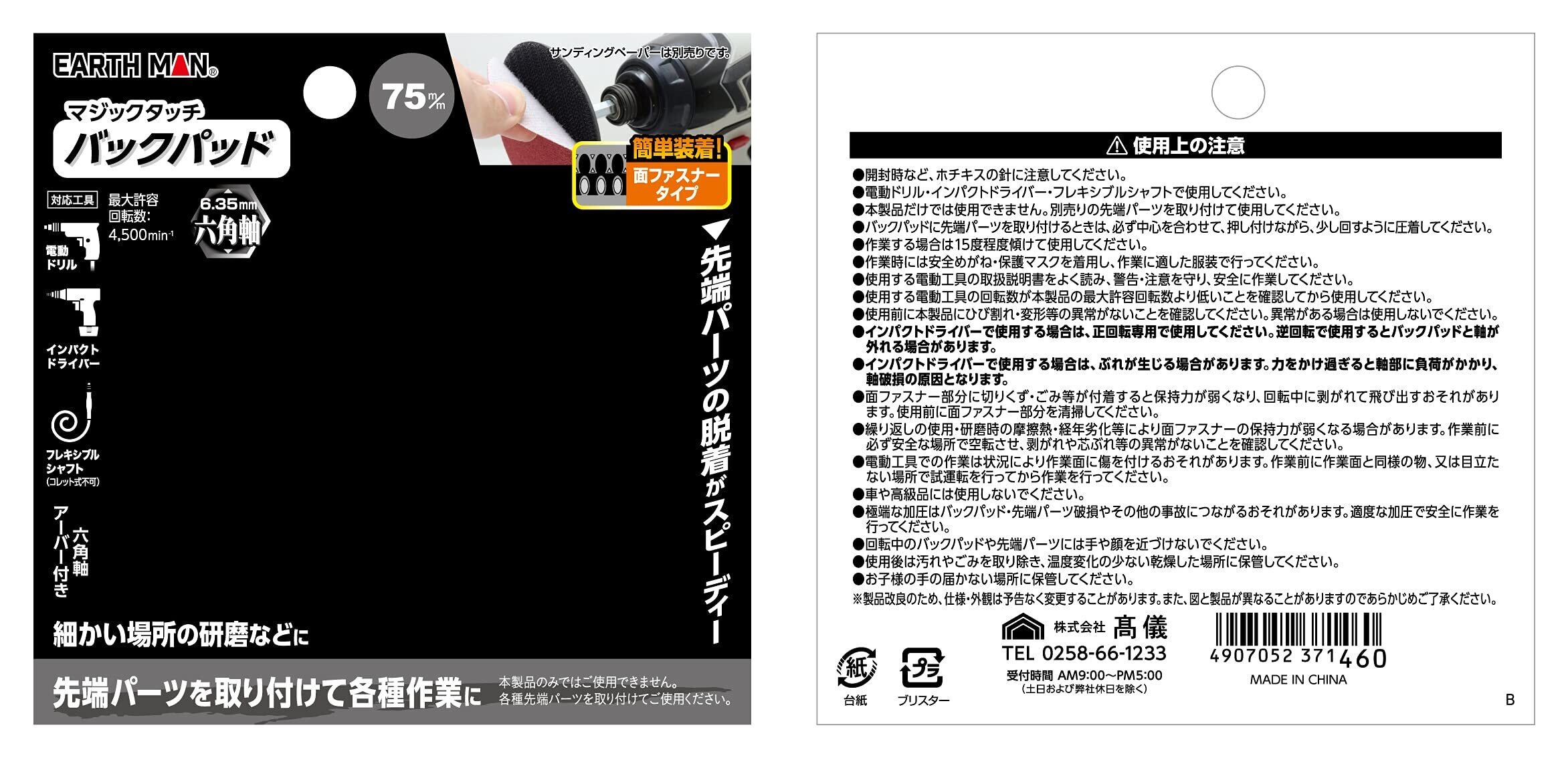 高儀(Takagi) EARTH MAN マジックタッチ75mm バックパッド