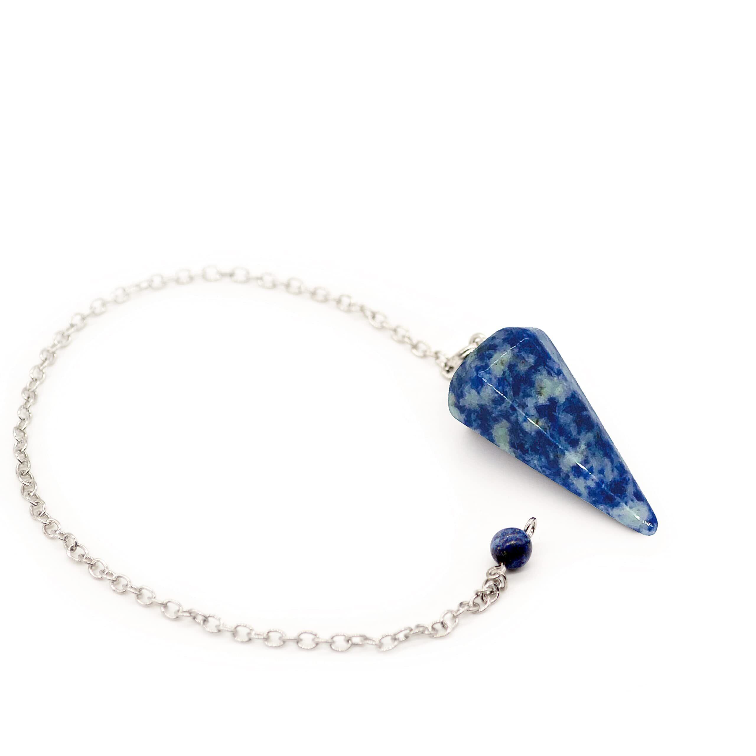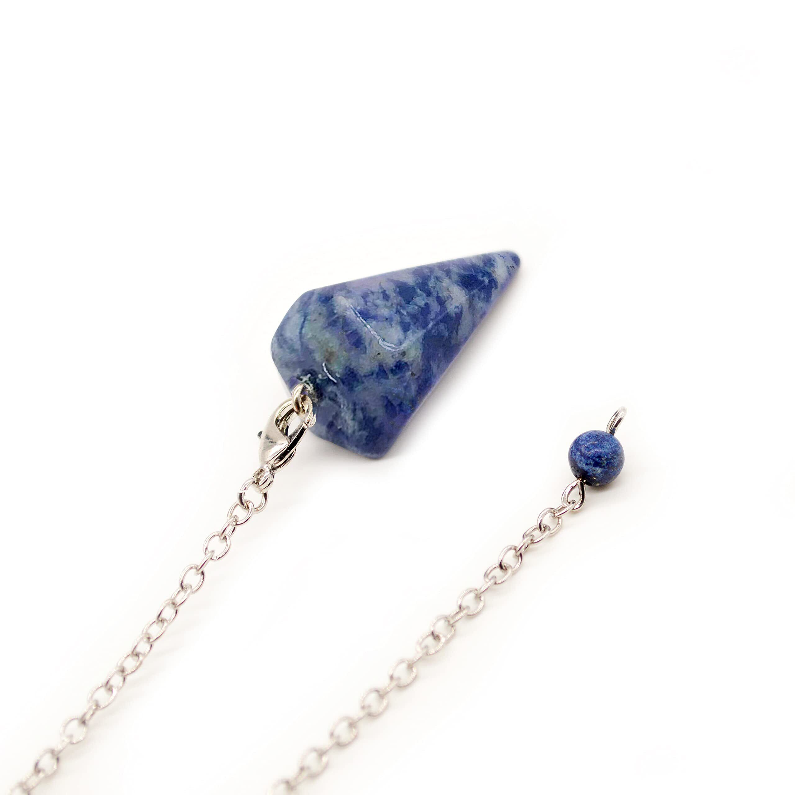 [Bella Jade] ペンデュラム振り子、天然ブルーソーダライト製、 ダウジング風水占い用、ヒーリングストーン チャウラストーン六角錐 6面カット、金属チェーン付き