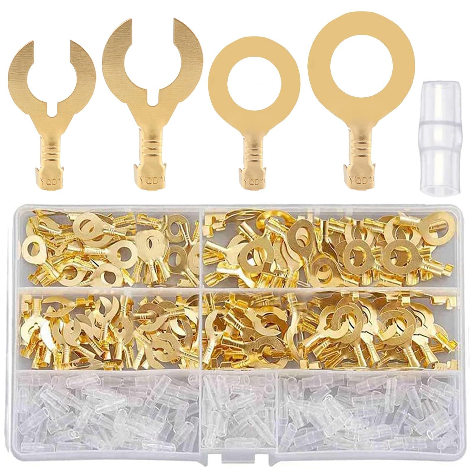クワ型 丸型 端子セット 6mm 8mm 真鍮 圧着端子 400個入 絶縁スリーブ付き アース取り ケーブル 配線接続 端子 ターミナル コネクター 自動車 バイク スピーカー 0.5~2sq | yankees