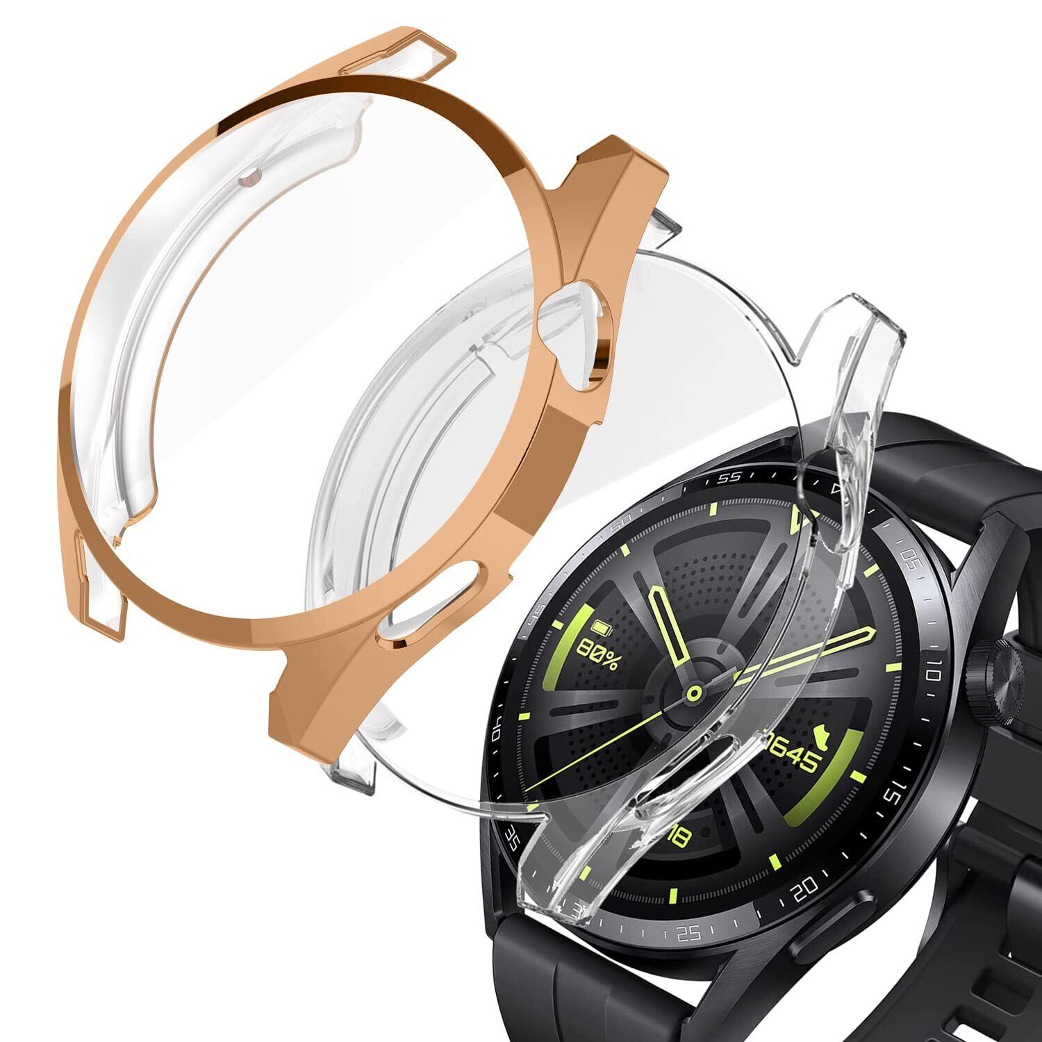 WUWOCJ 2枚セット ケース適応 HUAWEI WATCH GT3 46mm ソフト TPU 全面保護カバー 擦り傷防止 軽量 カバー (ローズゴールド/透明)