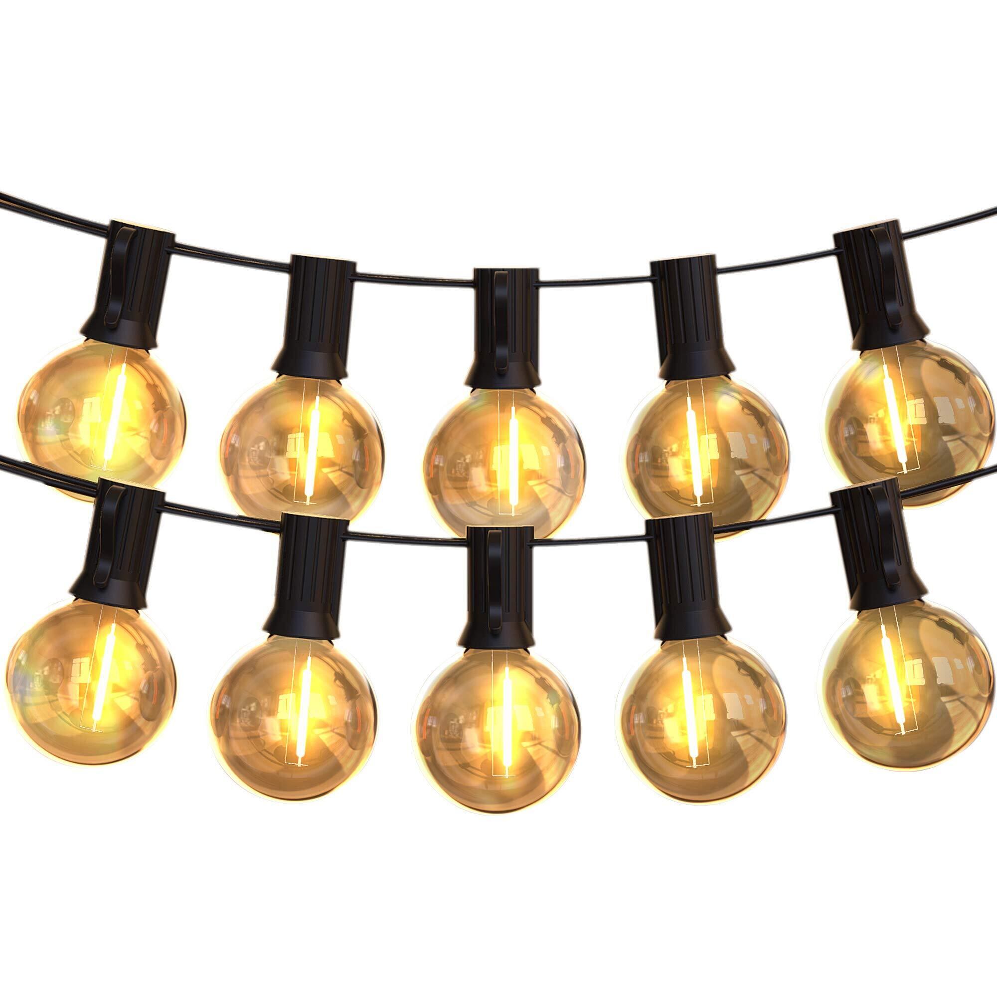 LEDストリングライト 防雨型 11.5m 24個電球 G40 E12口金 電球色 PC素材 破損しにくい 屋内/屋外照明 誕生日 パーティー電飾 ガーデンライト 庭 祭り 商店街 【適格請求書発行可】