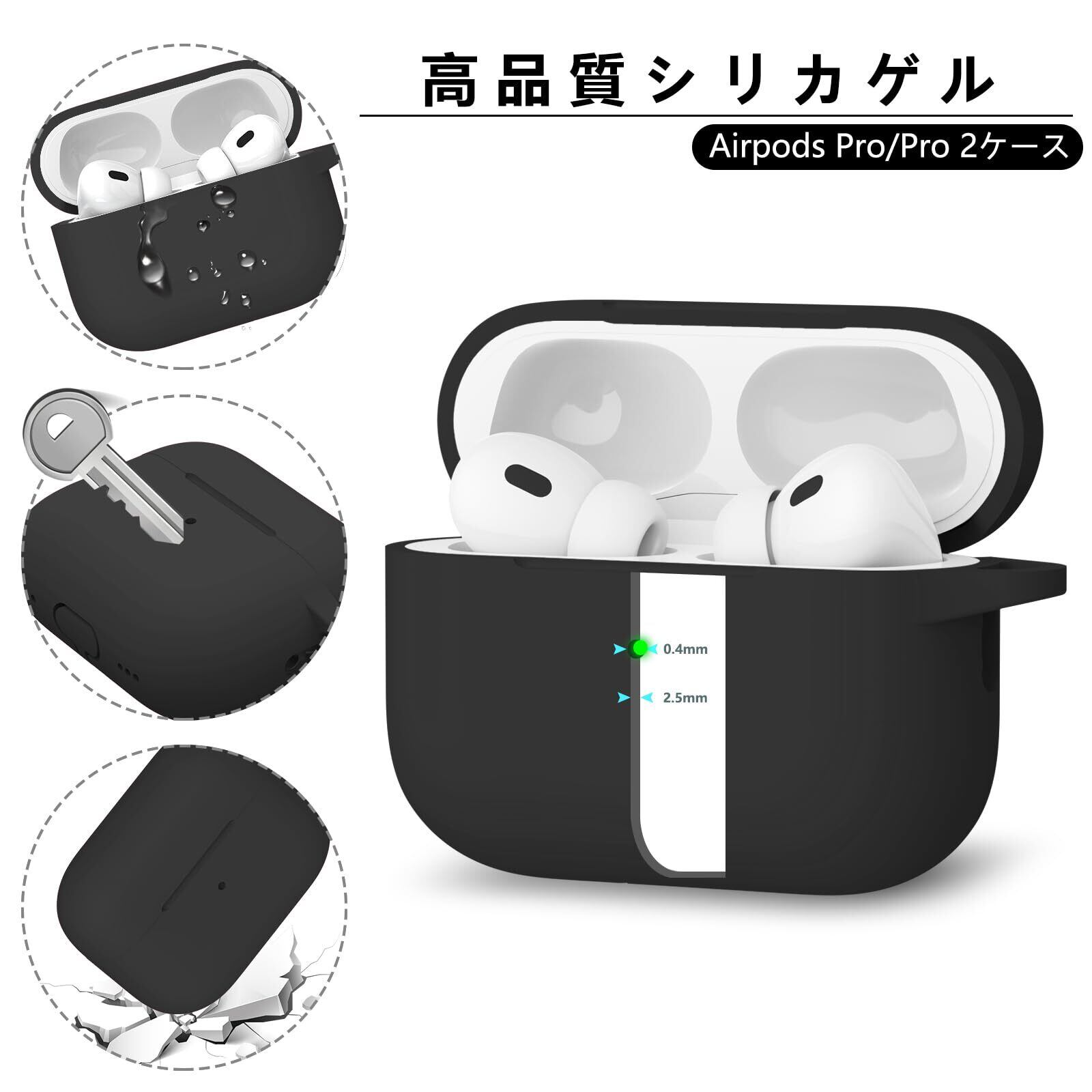 【対応機種】AirPods Pro(2024/2023/2022/2019)に使用することができ、イヤホン保護カバーと金属フックがあり、注意:包装はイヤホン、充電ケース、充電器を含まない