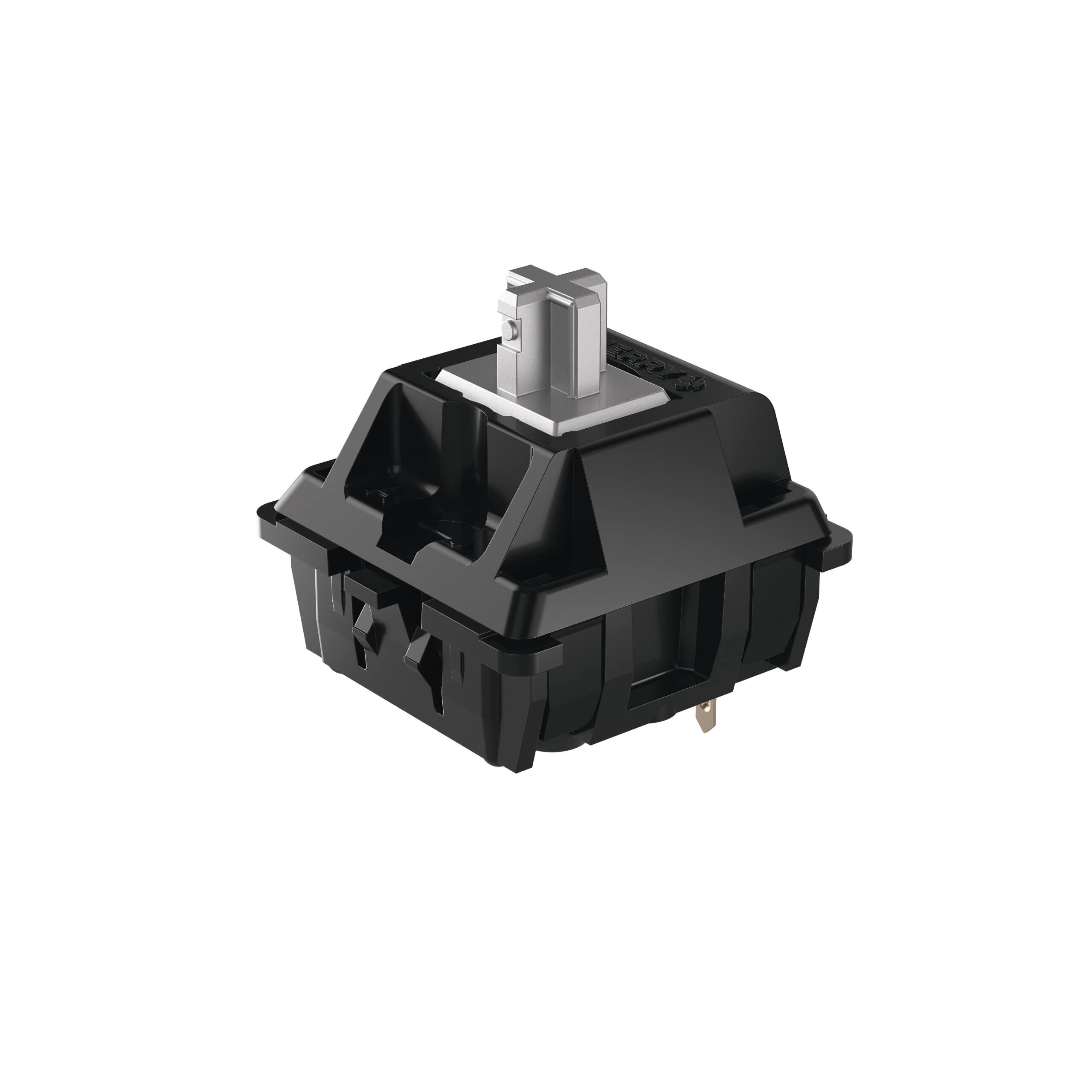 カチカチしたクリック感が少なく、キーを押し下げるほどスイッチが重くなるリニアストロークタイプの軸です。1.2mmでスイッチオンする為、ゲームなどで反応速度を重視するゲームユーザーに非常に人気があります。