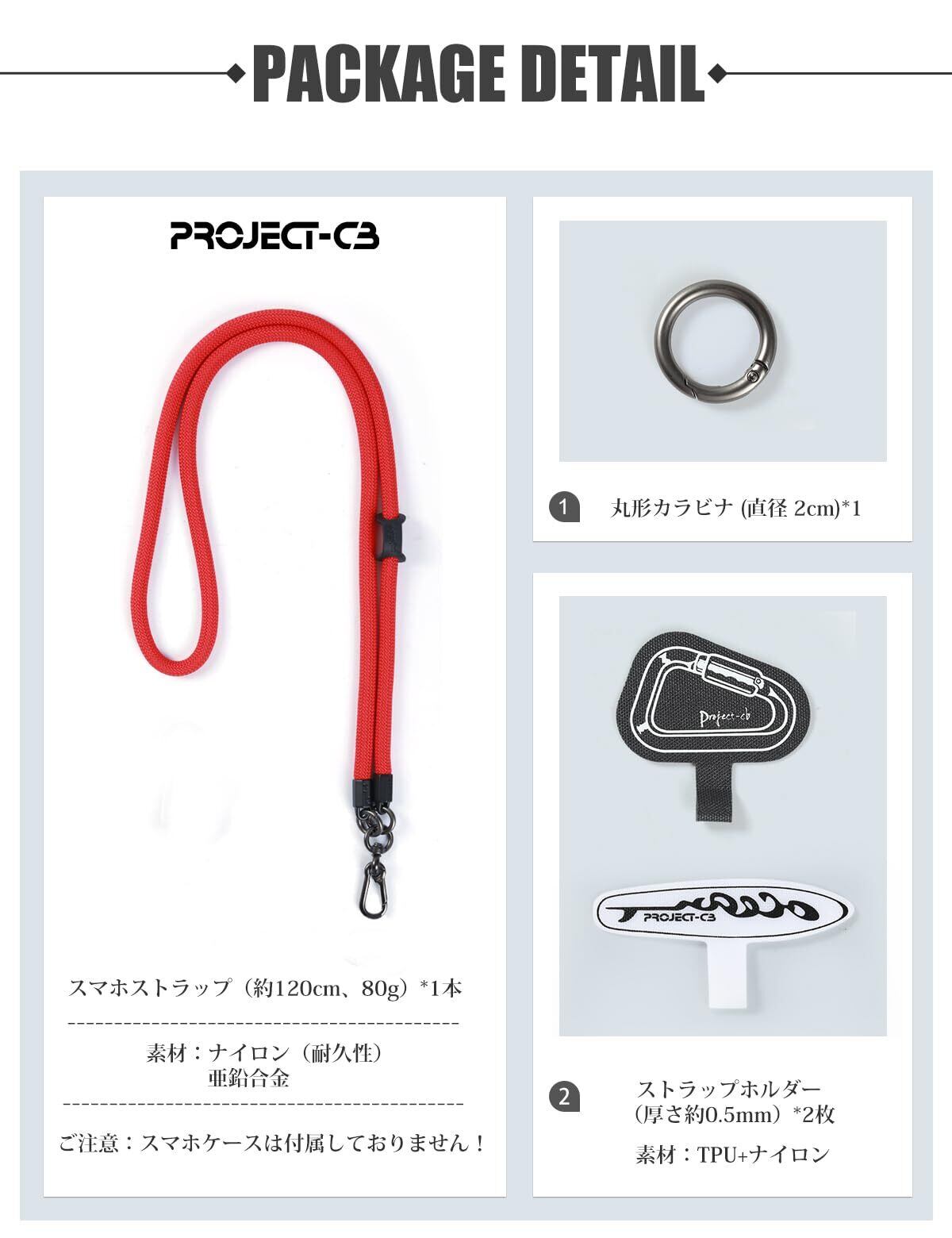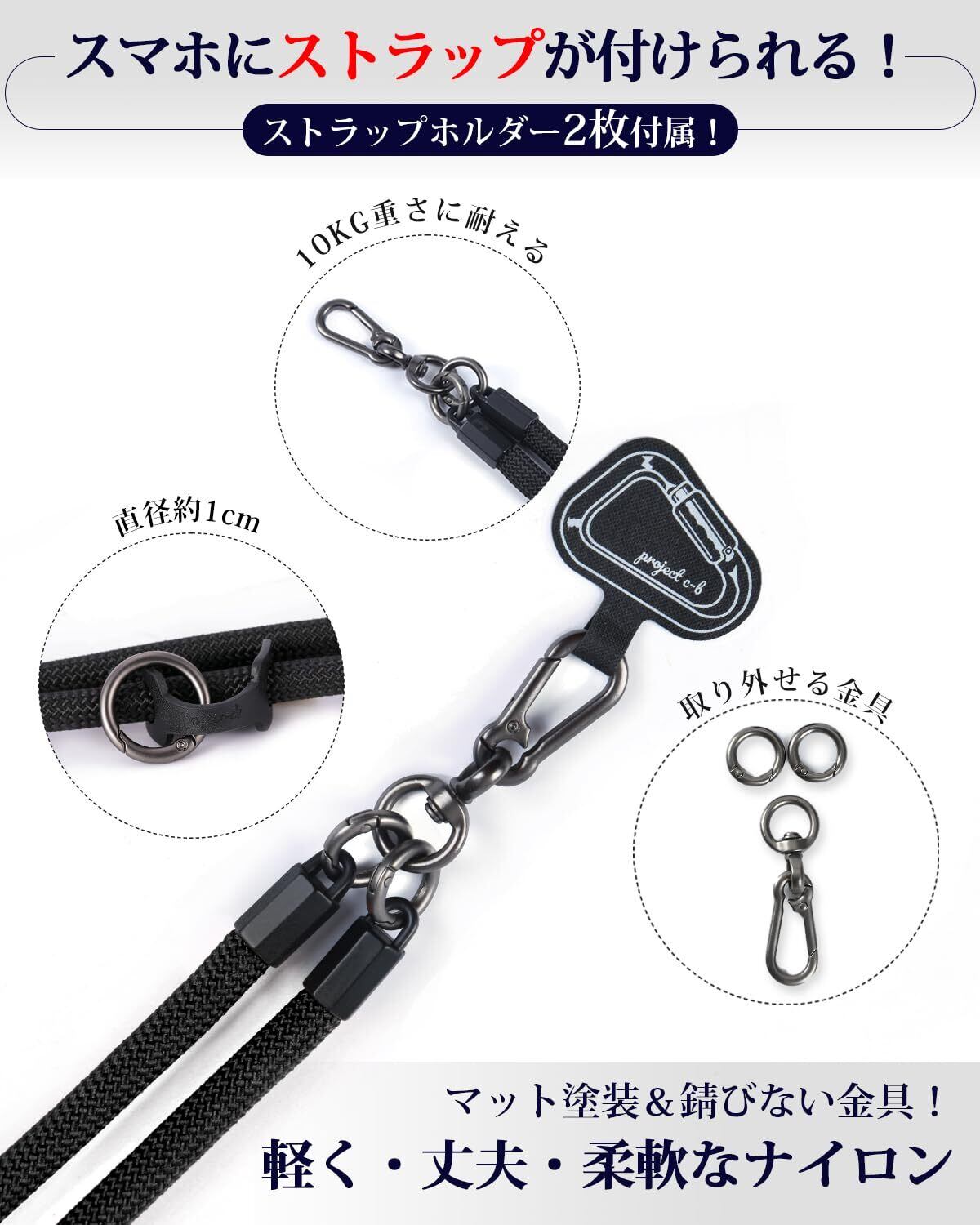 [project-cb] スマホストラップ ストラップホルダー *2 首掛け ショルダー 斜めがけ 極太 携帯ストラップ アウトドア 落下防止
