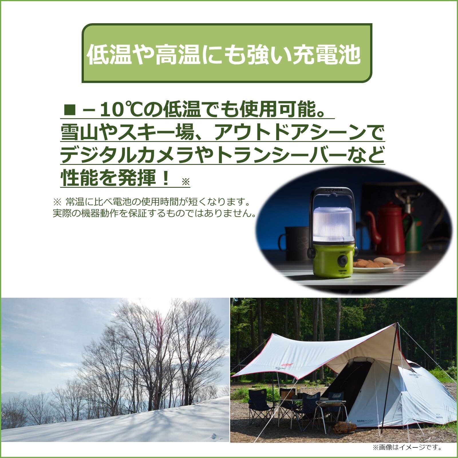 スキー場などの低温(-10℃)環境下でも、夏海などの高温(50℃)環境下でも使える