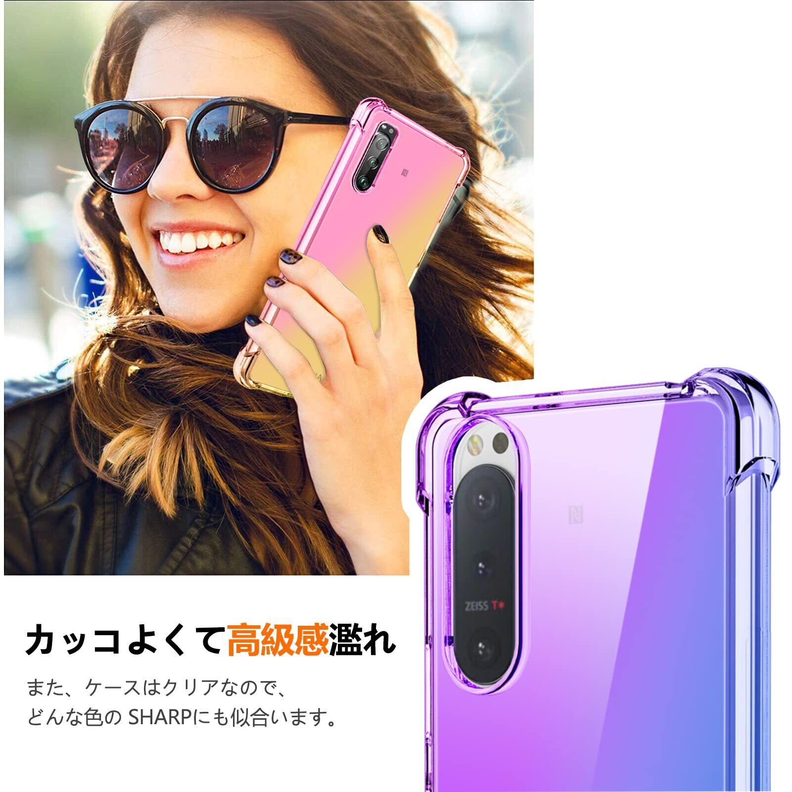 Xperia 1 V ケース クリア TPU グラデーション色 SO-51D/SOG10 ケース 耐衝撃 エクスペリア 1 V カバー 透明 一体型 落下防止 防塵 変形防止 ソニー カバー ピンク/紫 W-CSZH-036-02 | yankees