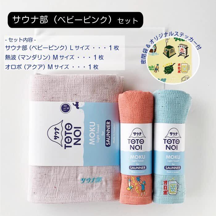 色 サウナMOKU Lサウナ部(ベビーピンク)M熱波(マンダリン)Mオロポ(アクア)