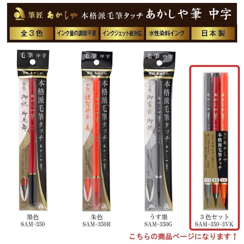 あかしや 筆ペン あかしや筆 中字 3色セット SAM-350-3VK
