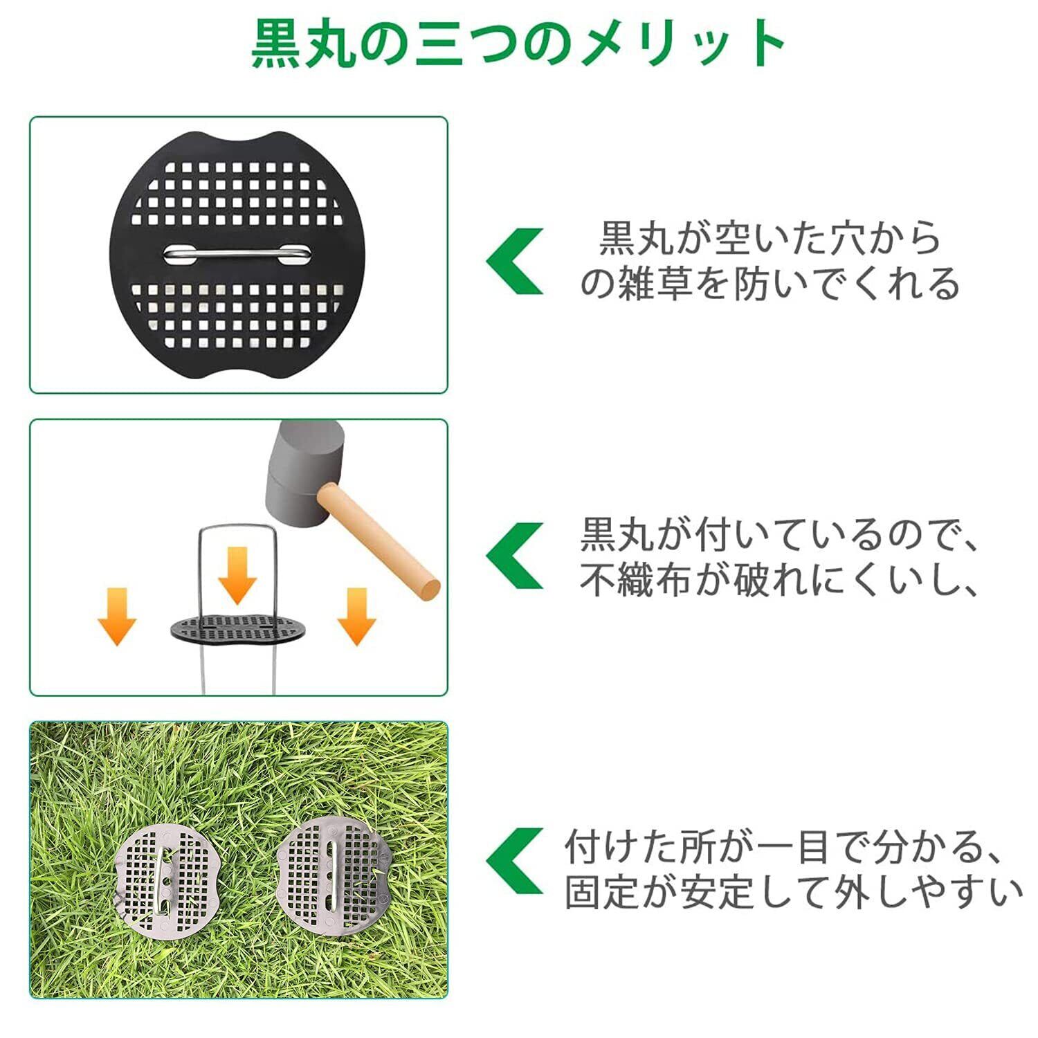 Uピン杭 コ型止めピン 黒丸付 黒丸君 防草シート 固定用 人工芝 押さえピン キャンプ テントペグ 15cmx3cmx15cm 100点セット