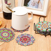 JANLOFO ダイヤモンドアート コースター コルク ダイヤモンドアート キット 初心者 ダイヤモンドペインティング 8枚 手作りキット 簡単 DIY ダイアモンドビーズ 初心者 ホルダー付き アートクラフト 工芸品 丸型 曼荼羅