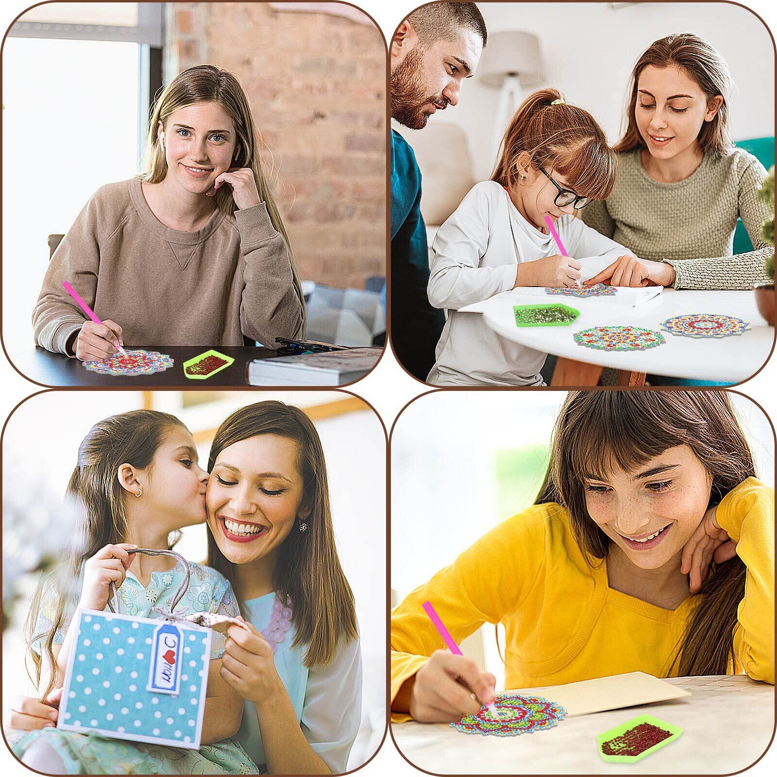 JANLOFO ダイヤモンドアート コースター コルク ダイヤモンドアート キット 初心者 ダイヤモンドペインティング 8枚 手作りキット 簡単 DIY ダイアモンドビーズ 初心者 ホルダー付き アートクラフト 工芸品 丸型 曼荼羅 | yankees