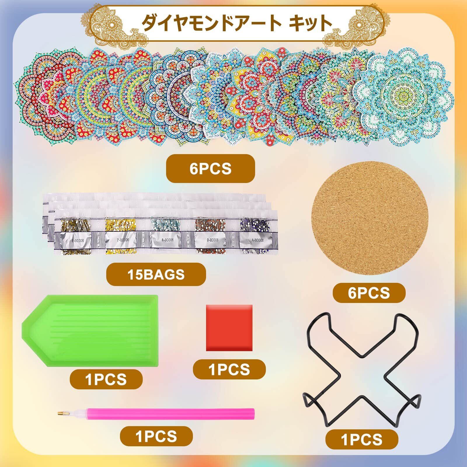 【パッケージ内容】丸型のダイヤモンドペインティングコースター×8枚、ダイヤモンドビーズ×14袋、ペン×1本、ビーズトレイ×1個、接着剤×1枚、カップホルダー×1個。お子様から初心者の方まで、ダイヤモンドアートの楽しさを存分に味わえるセットです。 【素材】これらのダイヤモンド塗装コースターは厚さ2mmのアクリル板で作られているので、軽量で摩耗に強くて割れにくいです。コースターの数字や絵柄がはっきりと見えます。粘着性もよくて、ダイヤモンドビーズが落ちにくいです。 【使いやすい】ダイヤモンドアート セットは粘着タイプで、作り方も簡単です。まず、コースターの上面にカバーしている保護フィルムをはがします。次に、番号に従ってダイヤモンドビーズを選択し、赤い接着剤のついたペンでビーズを拾い、対応する番号の位置に貼り付ければ完了です。 【保管に便利】ダイヤモンドアート キットには、スチール製のカップホルダーがあるので、使わない時にコースターをカップホルダーに収納して、邪魔になりません。 【適用場合】豪華な曼荼羅の柄、わかりやすい作り方で、ダイアモンドアートの初心者に最適です。また、約10cmの丸型のちょうどいいサイズ感で、子供の集中力を高めるための手芸キットとしてお勧めです。誕生日、子供の日、祝日などに家族や友人にプレゼントして、DIYの喜びを一緒に分かち合うことができます。