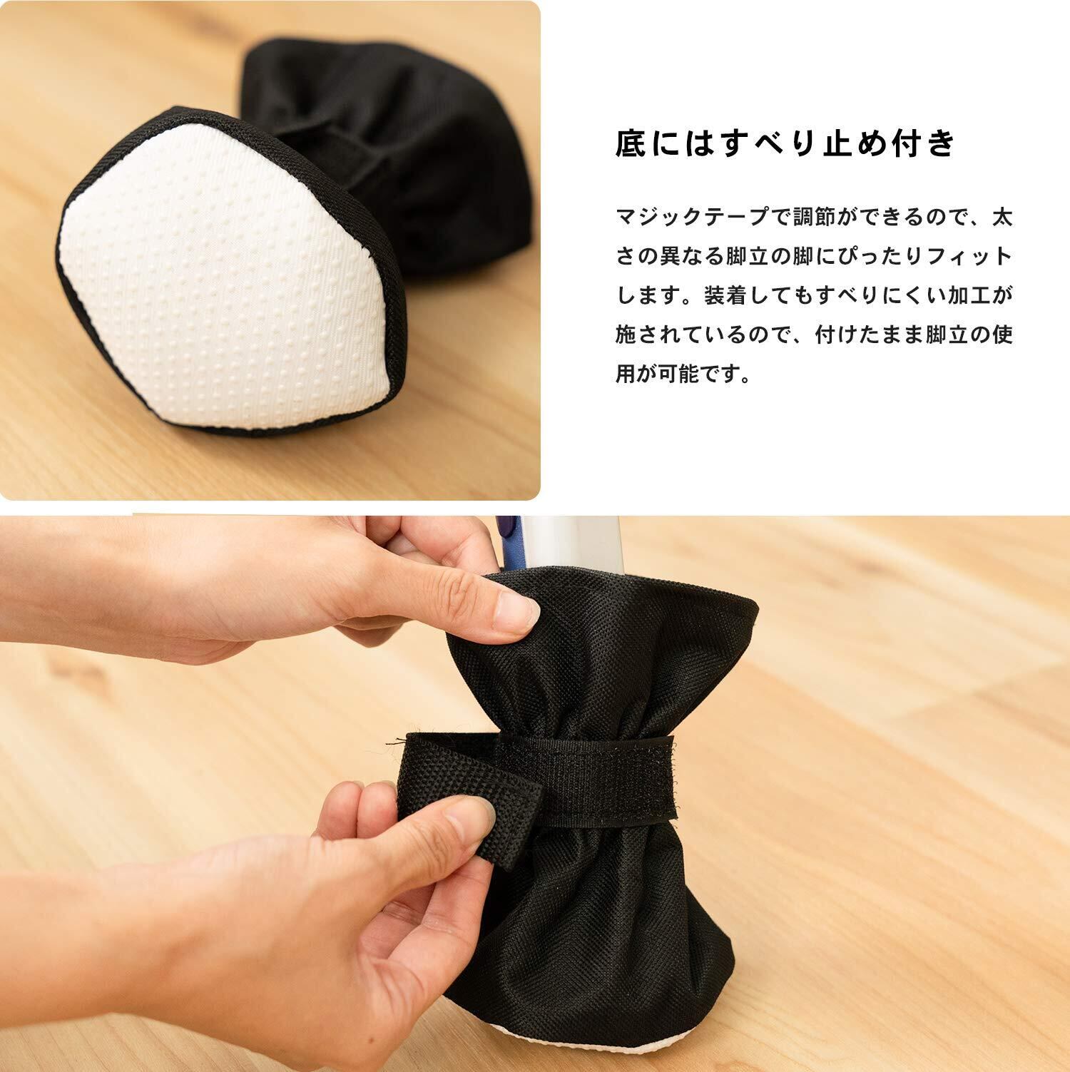 マジックテープで調節が出来るので、太さの異なる脚立の脚にぴったりフィットします。装着してもすべりにくい加工が施されているので、付けたまま脚立の使用が可能です。