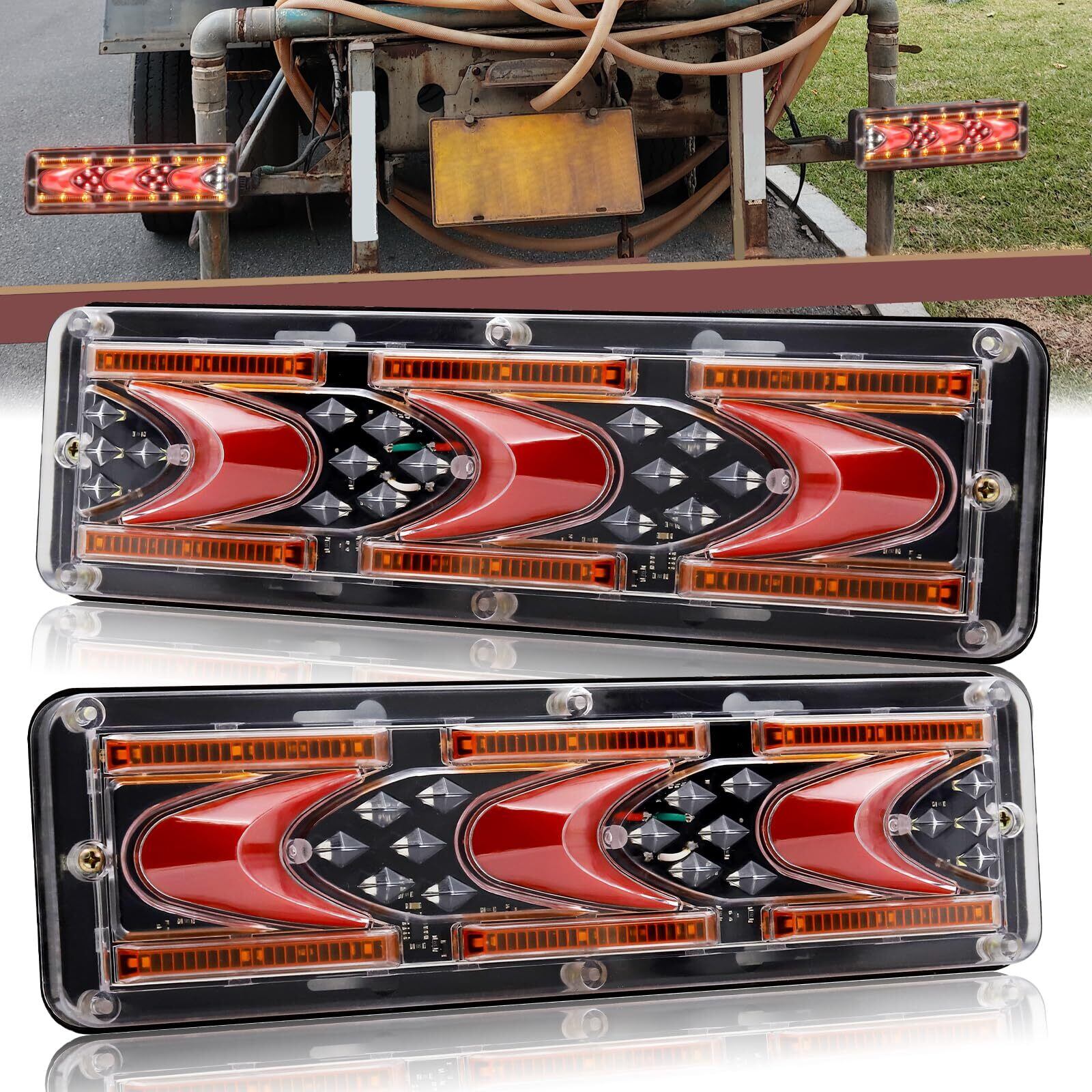 Ygmylandbb LED トラック テールランプ 24V シーケンシャル 流れる ウィンカー テールブレーキ スモール リアコンビネーショントラック トレーラー ボート用 テールライト 矢印タイプ 汎用 車検対応 ABS製 クリアレンズ 左右2個セット (レッド) | yankees
