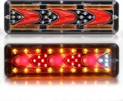 Ygmylandbb LED トラック テールランプ 24V シーケンシャル 流れる ウィンカー テールブレーキ スモール リアコンビネーショントラック トレーラー ボート用 テールライト 矢印タイプ 汎用 車検対応 ABS製 クリアレンズ 左右2個セット (レッド)