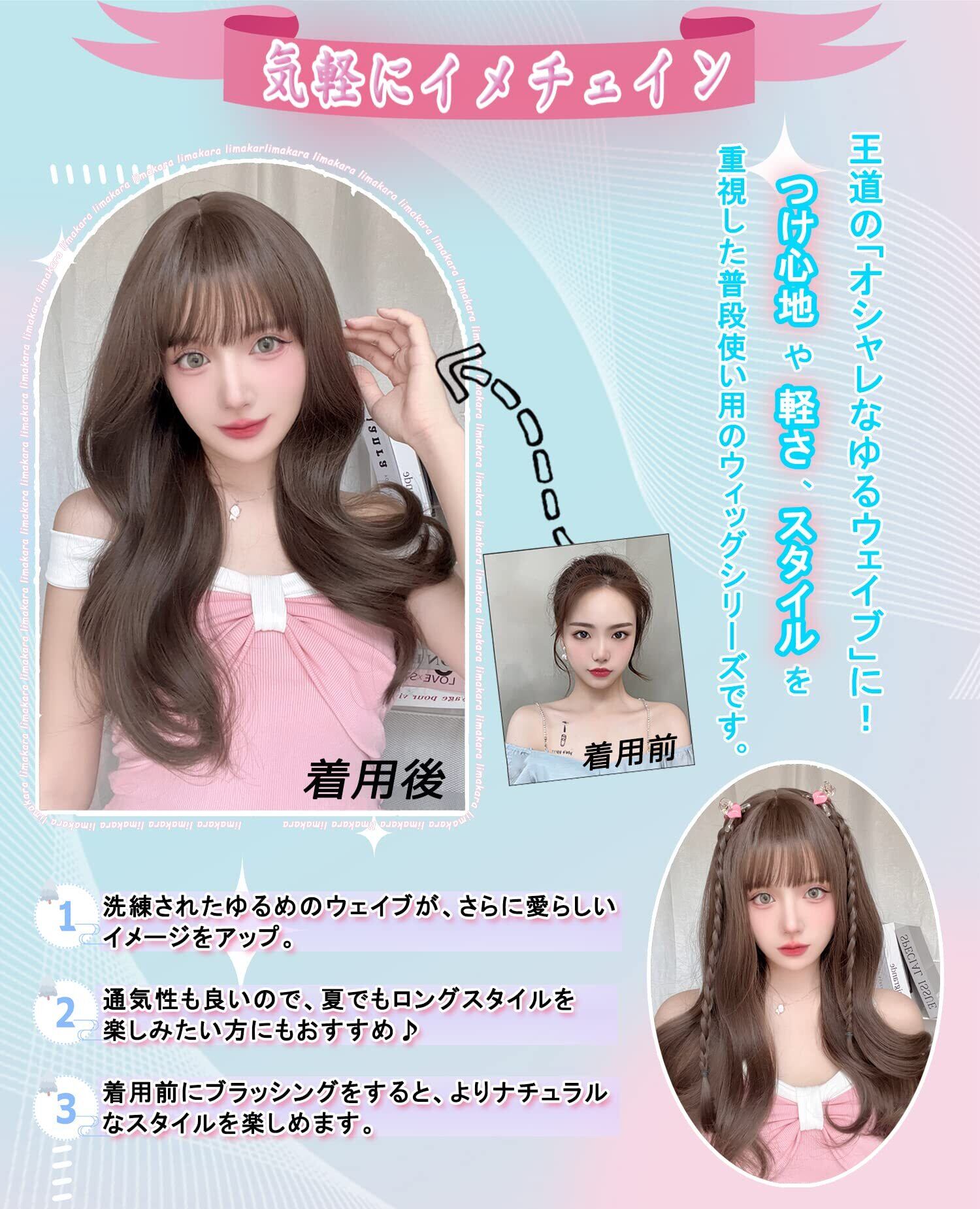 Limakaraウィッグ ロング 巻き髪 ブラウン セミロング カール フルウィッグ かつら レディース 自然 ぱっつん 原宿系 小顔 人気 耐熱 wig ファッション ロリータ ネット/櫛付き アッシュブラウン