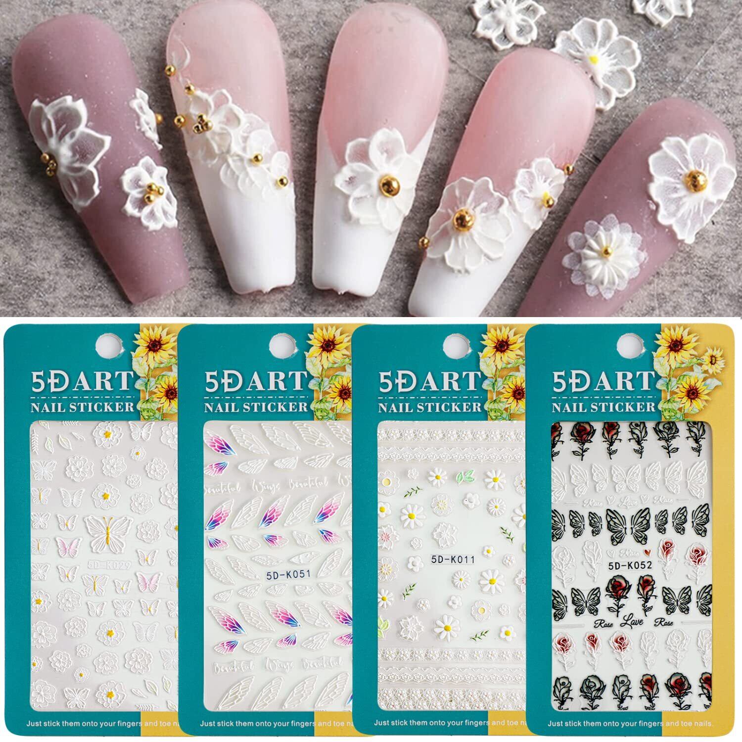 Biutee ネイルステッカー 4枚花柄ネイルアートシール 5Dネイルシール 混合花柄ネイルシール 4種類 損傷のない 手足の爪 ネイルシール ネイルステッカー ネイルラップ 女性 可愛い人気 おしゃれな 上級