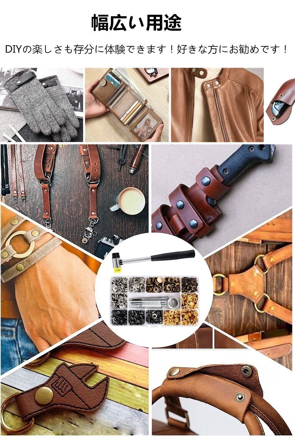 【幅広い用途】鞄、財布、服、キーケース、サンダル、アクセサリー等様々なホックの取付作業に必須の定番セットになります。大活躍な手芸材料セット、素敵なハンドメイド作品の仕上げに大いに役立ち間違いありません。DIY好きな方にお勧めです!